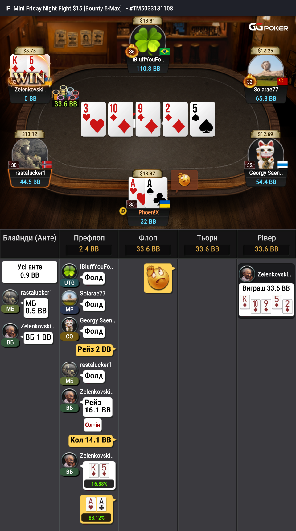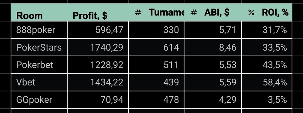 От доречі ще з попередніх постів хотів спитати, переважна більшість турнірів у тебе зіграна на GG? Ну тобто це прям 2/3 або більше?