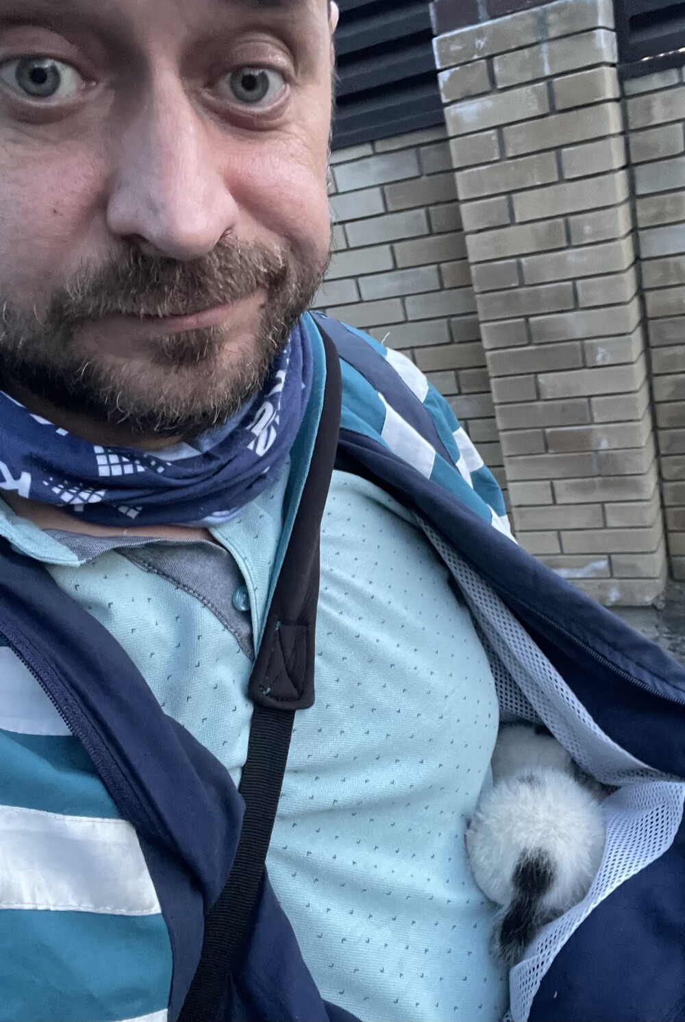 Коли проходив по стежці то побачив що хтось викинув кошеня(( саме викинув бо лежало воно під деревцем в гілках поряд зі стежкою де ходять часто люди. На жаль не всі люди - люди(( на передодні такого великого свята і зробити таке.. Воно підняло голову, подивилось на мене і я зрозумів, що коли буду йти назад і кішка його не забере то буде батькам ще один головняк 😁Йшов назад вже за девʼяту.. короче ось.