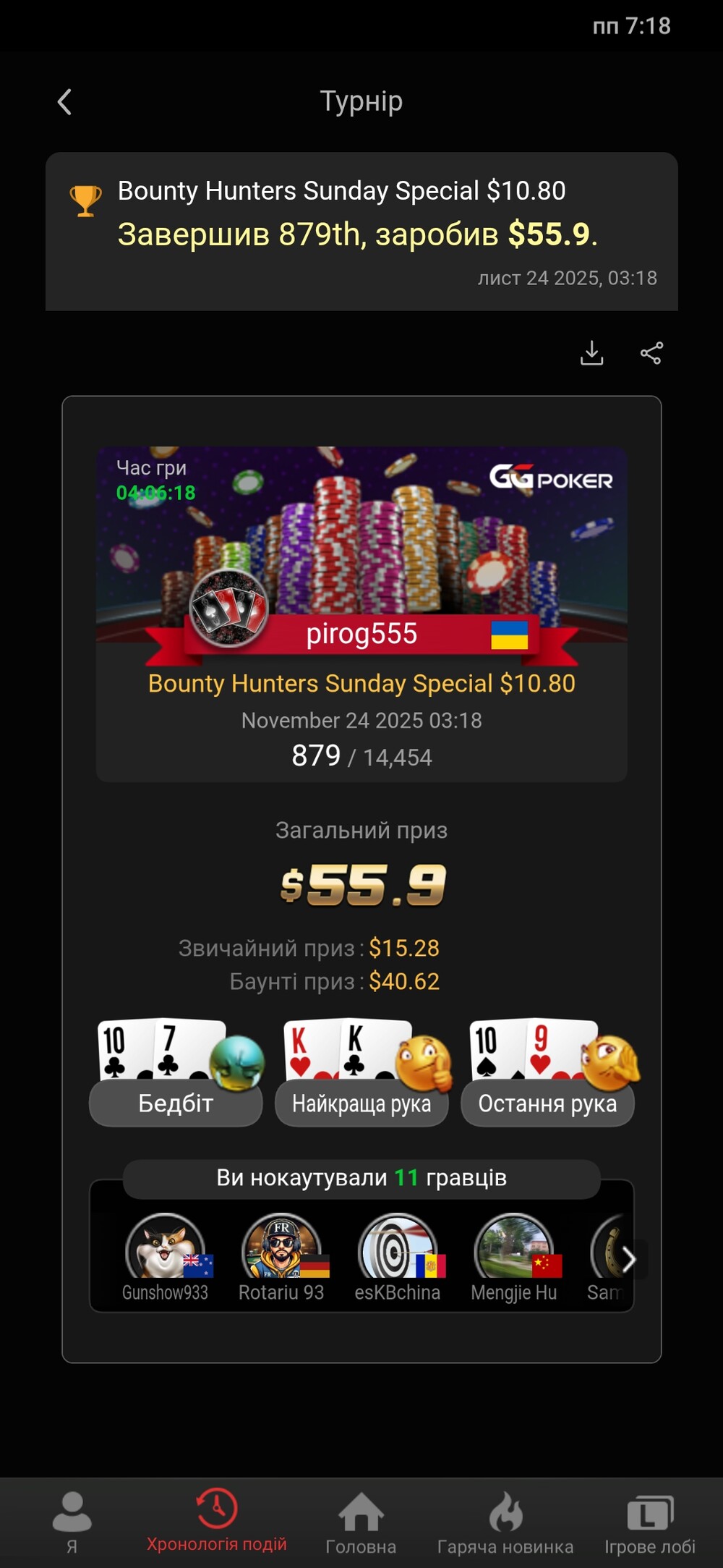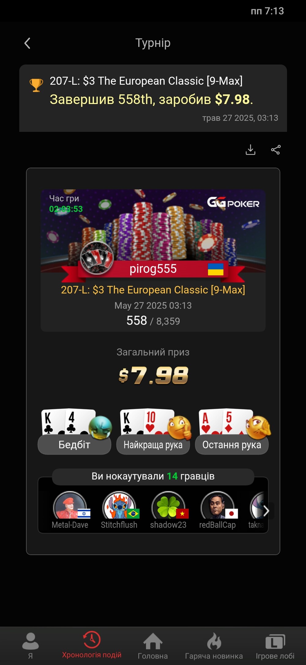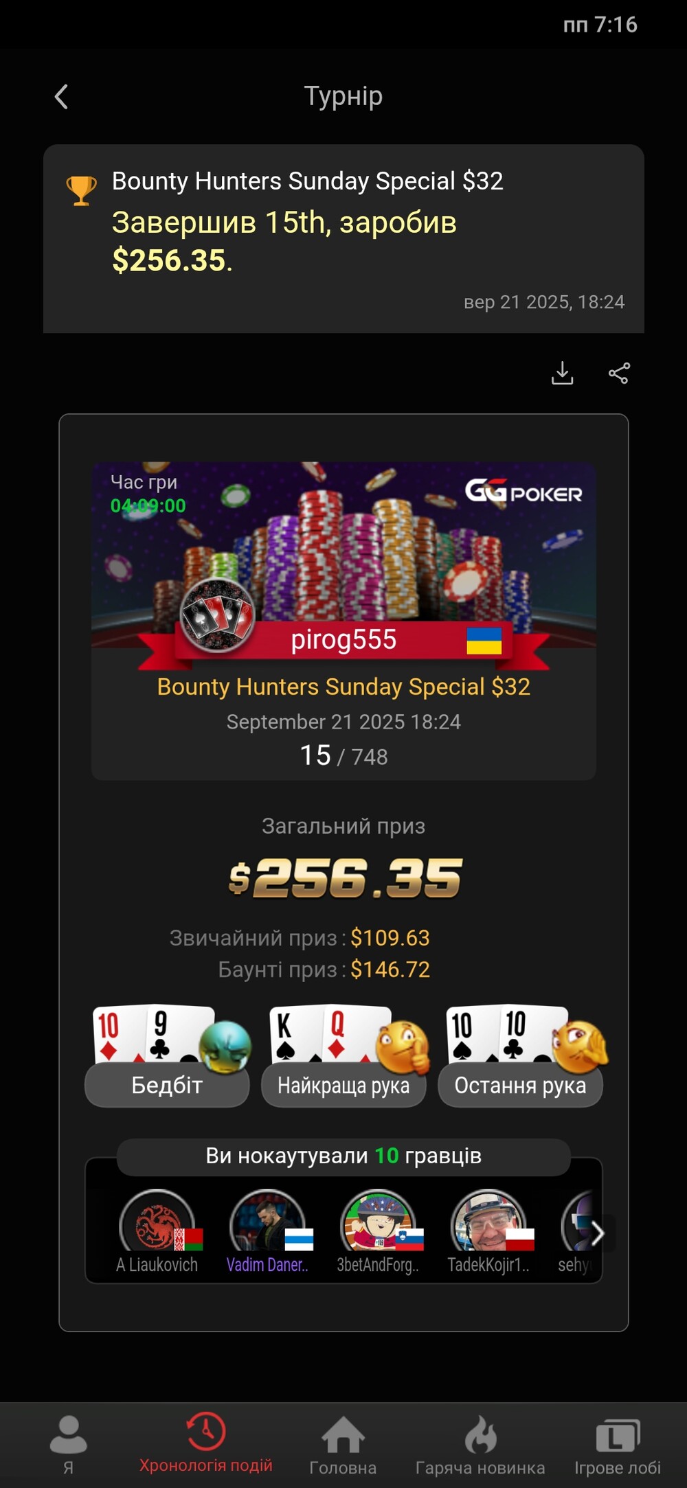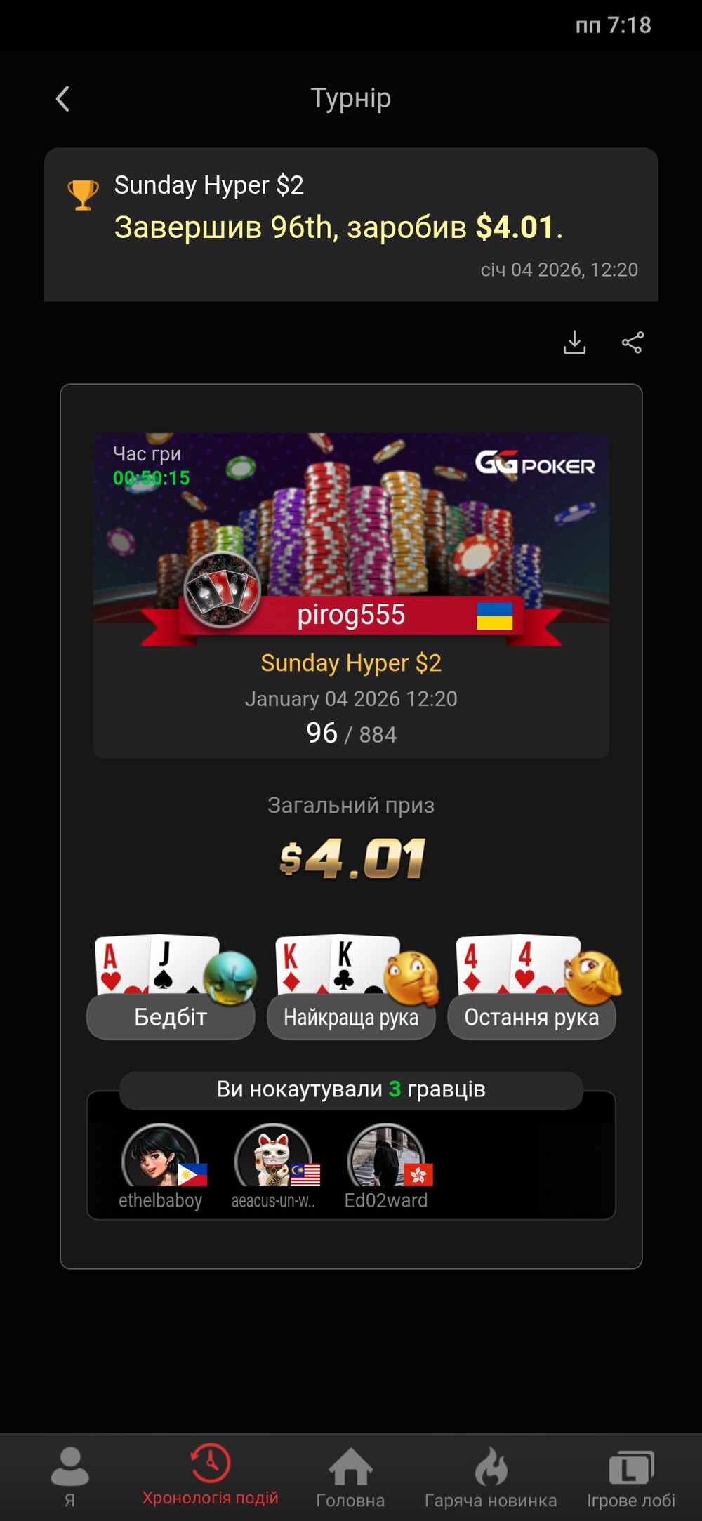Так напевно так і зроблю буду шукати турніри де менше , бо практично 75% я в топ 20 там із 2000 гравців півтори години сижу і все сливаю начинаю в себе вірити що кожна роздача моя.