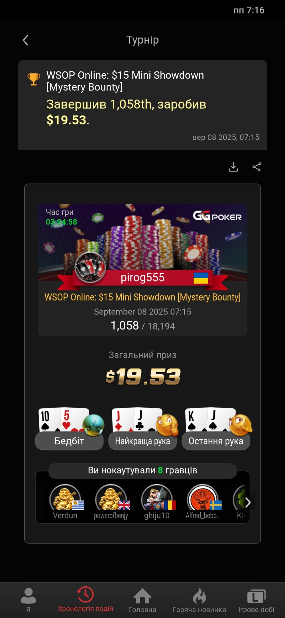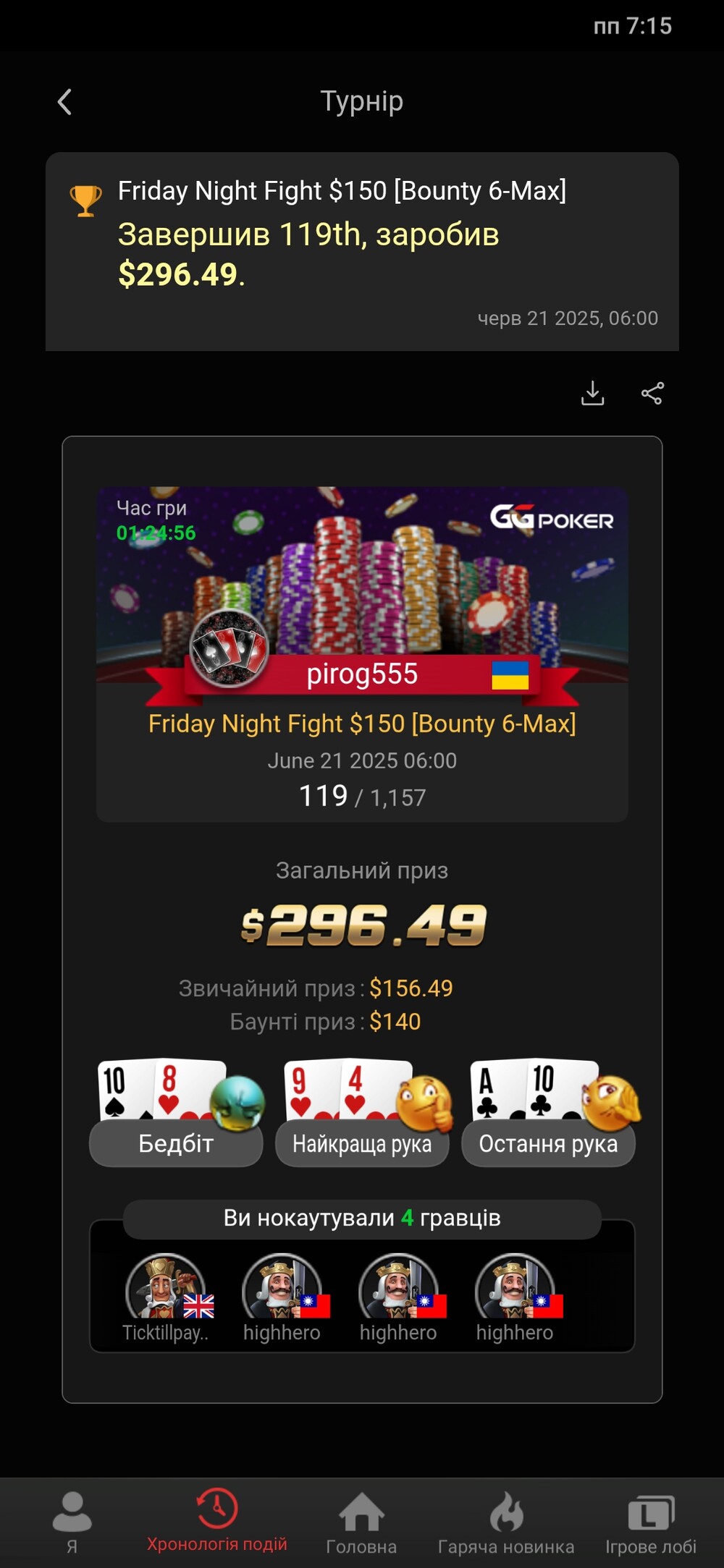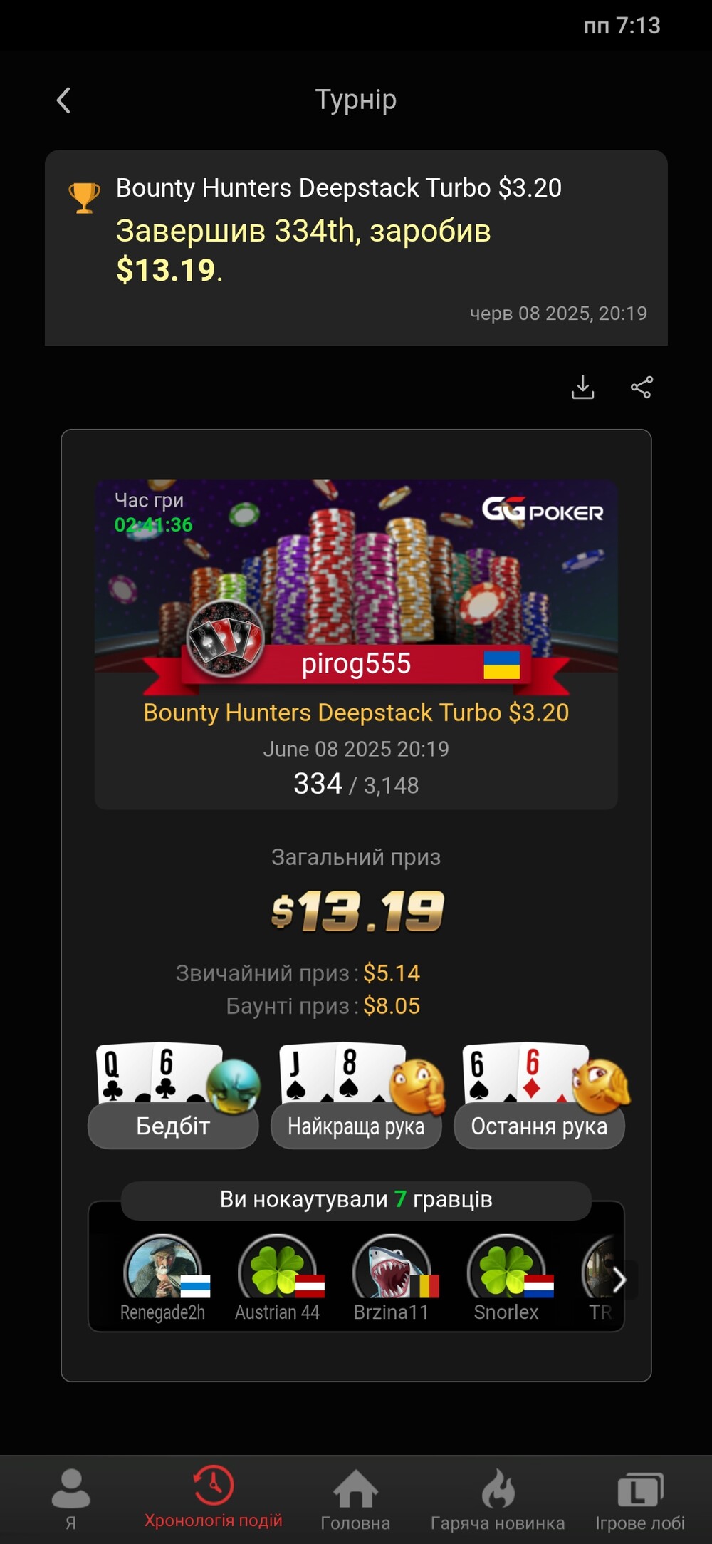 І вже награвся, і не треба ті турніри по долару мучити, з них профіту мало, тільки час на них витрачаєш.