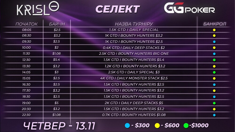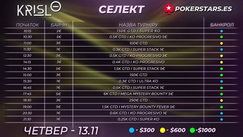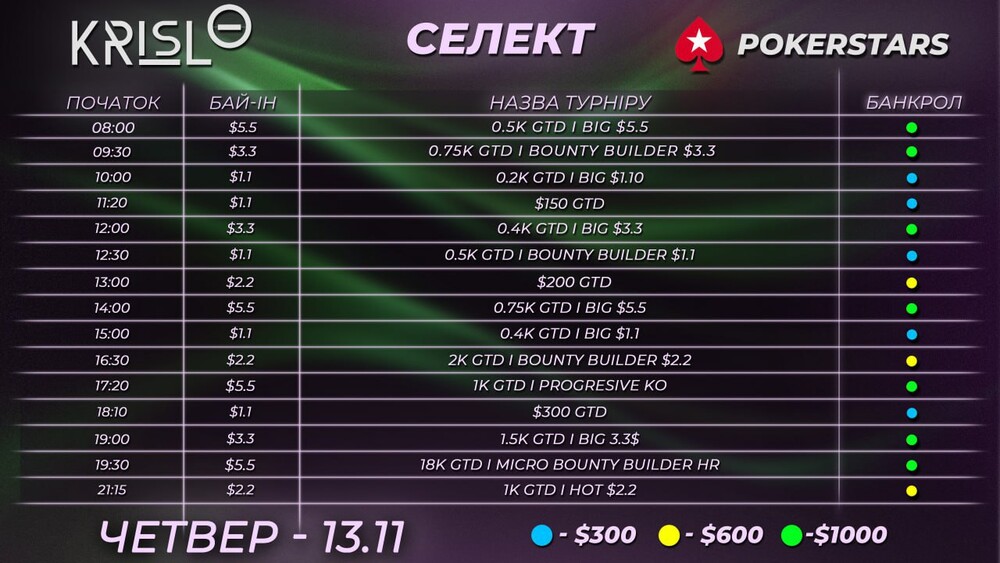 До великих вихідних залишилось зовсім трохи, але саме зараз важливо не розслаблятись 🎯 Свіжий селект турнірів на сьогодні вже готовий — без фаз і сателітів, тільки найкращі МТТ із якісними структурами.