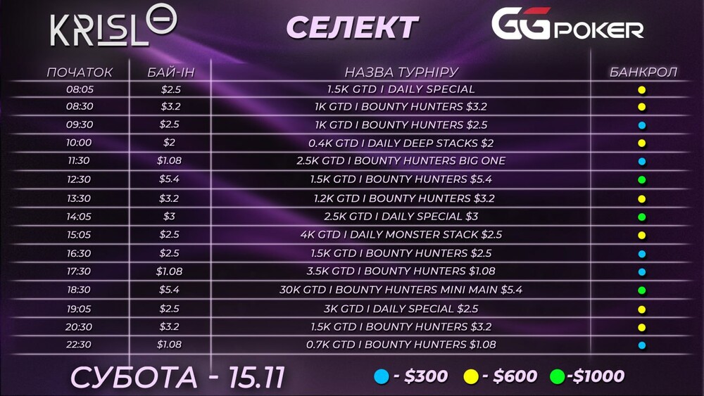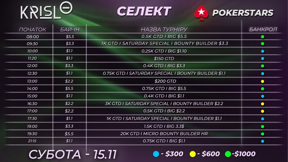 Свіжий селект турнірів на сьогодні вже готовий 💪 Без фаз і сателітів — тільки найадекватніші турніри з хорошою структурою та комфортними філдами.