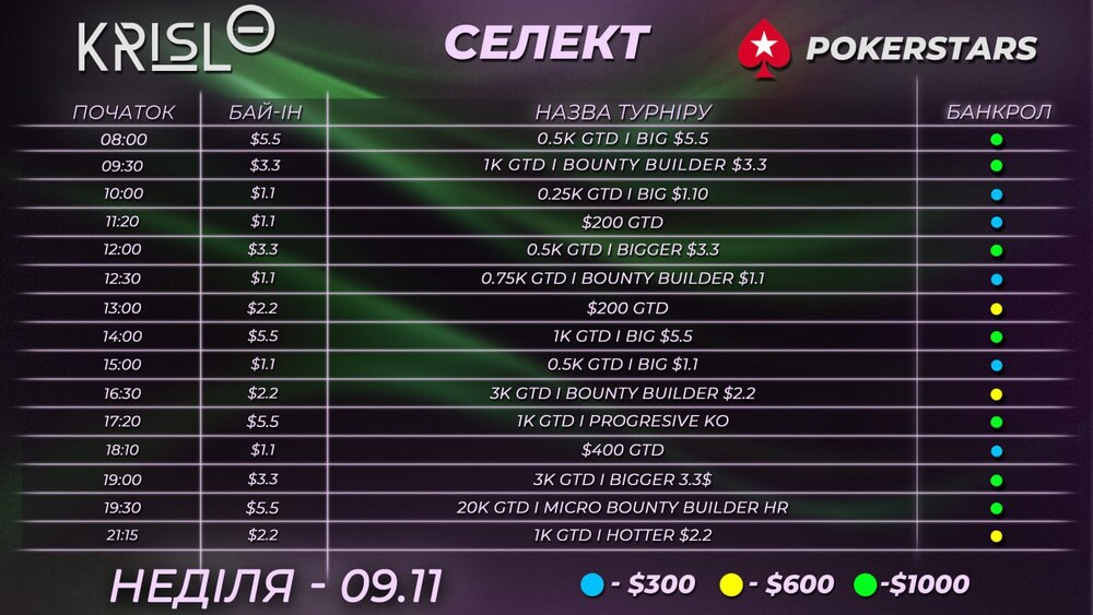 🏆 Неділя — головний день для гринду! Свіжий селект турнірів на сьогодні вже готовий 🔥 Тільки найкращі події неділі — без фаз і сателітів, оптимальні за структурою та EV.
