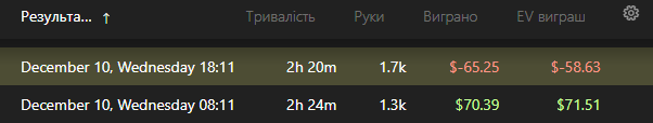 Не краща моя сесія,був розсіяним цілий день і втомлений від інших справ,в такі моменти краще рішення робити вихідний з покером,але я вирішив інакше і справедливо получив поганий результат