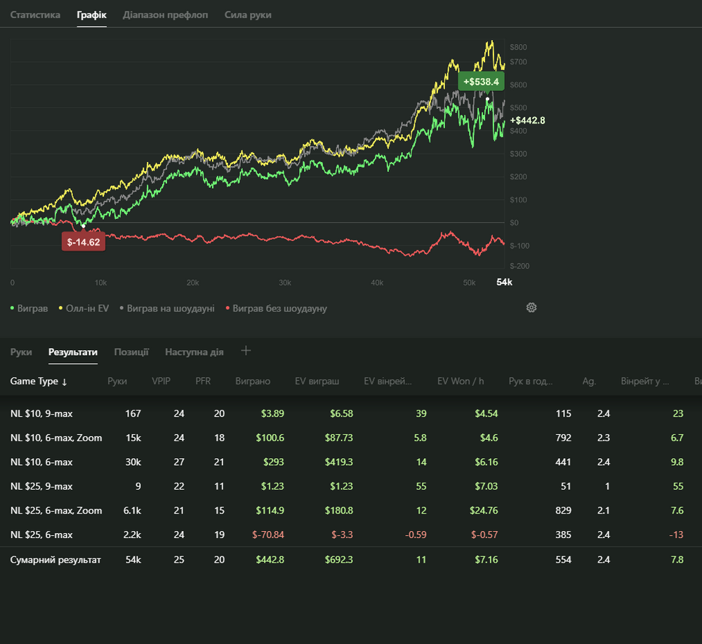 Останні пів року я був далеко від своєї кращої форми — багато випивав і не тільки,часті вечірки і тд. Півтора місяця невживав нічого. Курити кинув 3 місяці тому. Чистий холдем майже не грав з травня, грав в основному Омаху Пло100–500 ,сідав під дуже слабких любителів(дивно ,як ще при своєму способі життя плюсував). Але я хочу собі довести що не пропив і не прогуляв своі вміння і зможу пройти ще раз це