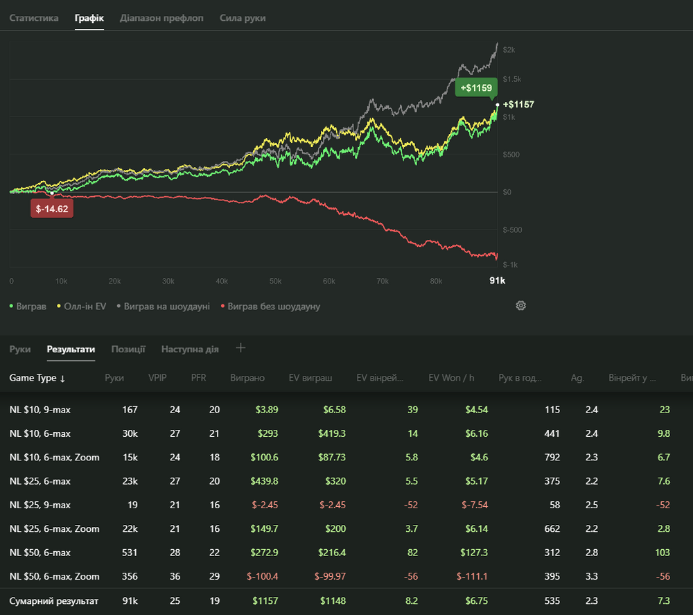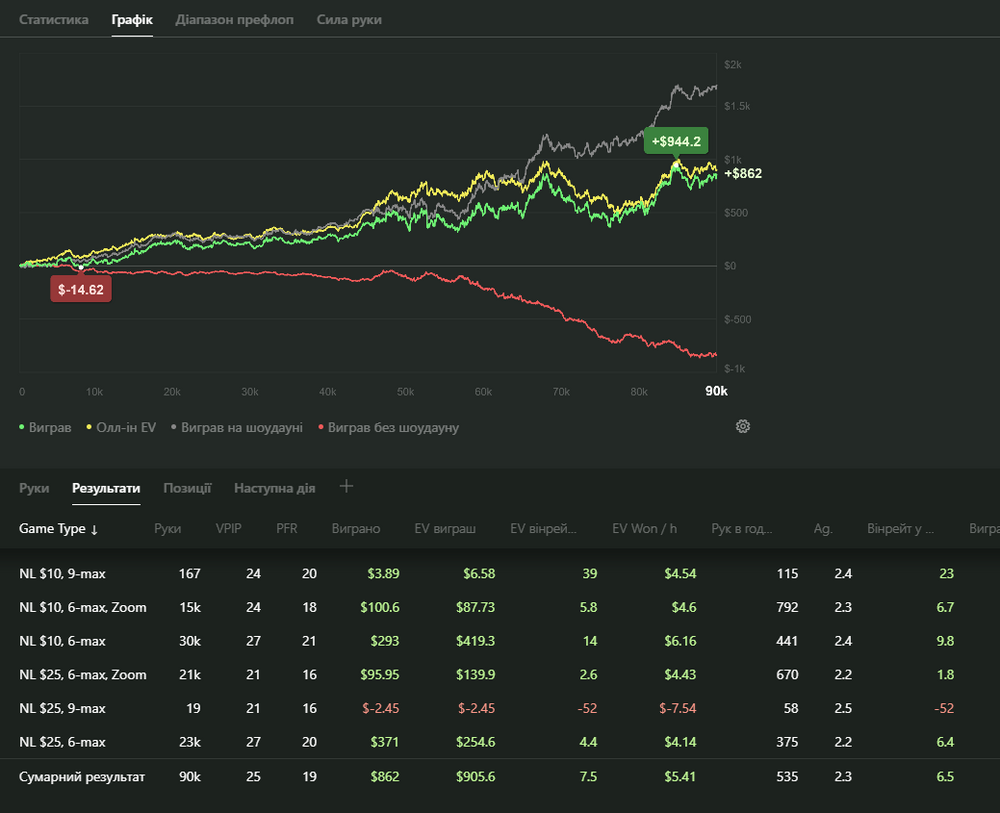 Останні пів року я був далеко від своєї кращої форми — багато випивав і не тільки,часті вечірки і тд. Півтора місяця невживав нічого. Курити кинув 3 місяці тому. Чистий холдем майже не грав з травня, грав в основному Омаху Пло100–500 ,сідав під дуже слабких любителів(дивно ,як ще при своєму способі життя плюсував). Але я хочу собі довести що не пропив і не прогуляв своі вміння і зможу пройти ще раз це