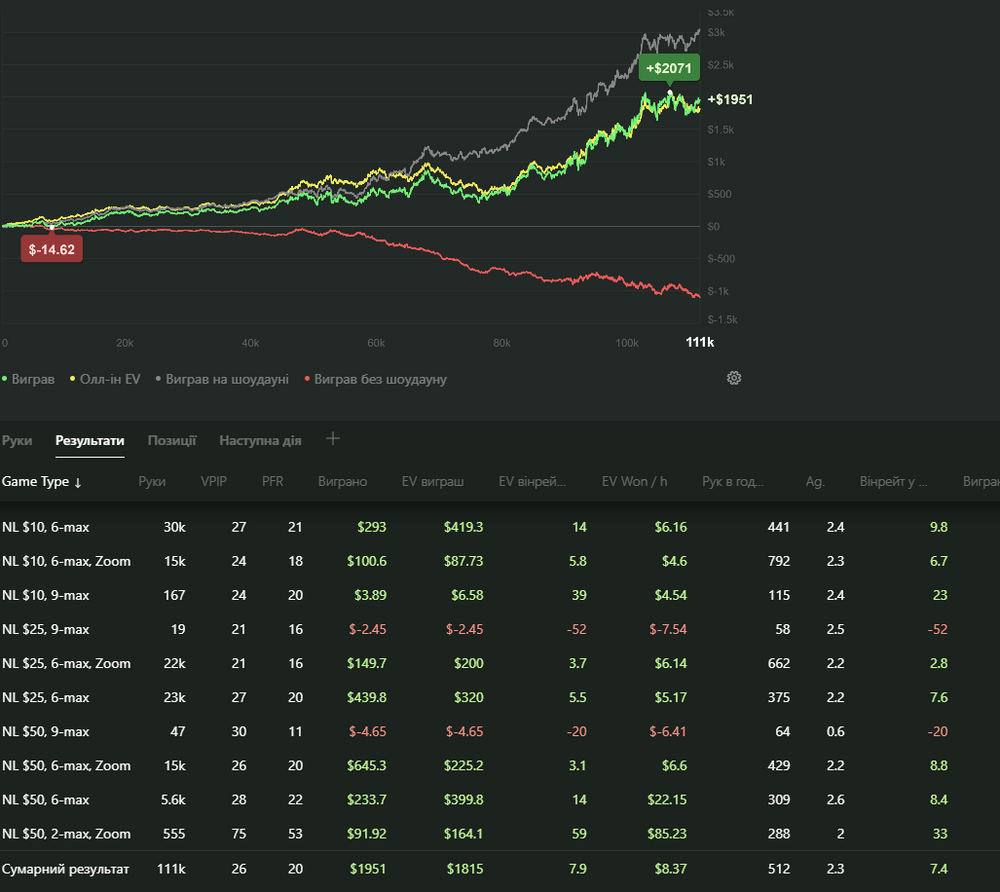 Останні пів року я був далеко від своєї кращої форми — багато випивав і не тільки,часті вечірки і тд. Півтора місяця невживав нічого. Курити кинув 3 місяці тому. Чистий холдем майже не грав з травня, грав в основному Омаху Пло100–500 ,сідав під дуже слабких любителів(дивно ,як ще при своєму способі життя плюсував). Але я хочу собі довести що не пропив і не прогуляв своі вміння і зможу пройти ще раз це