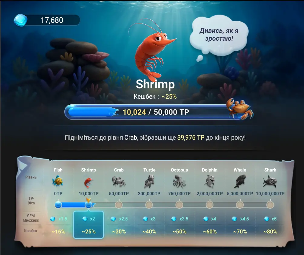 Зараз мій статус — Креветка. Перша серйозна ціль по лояльності — досягти рівня Краб.
