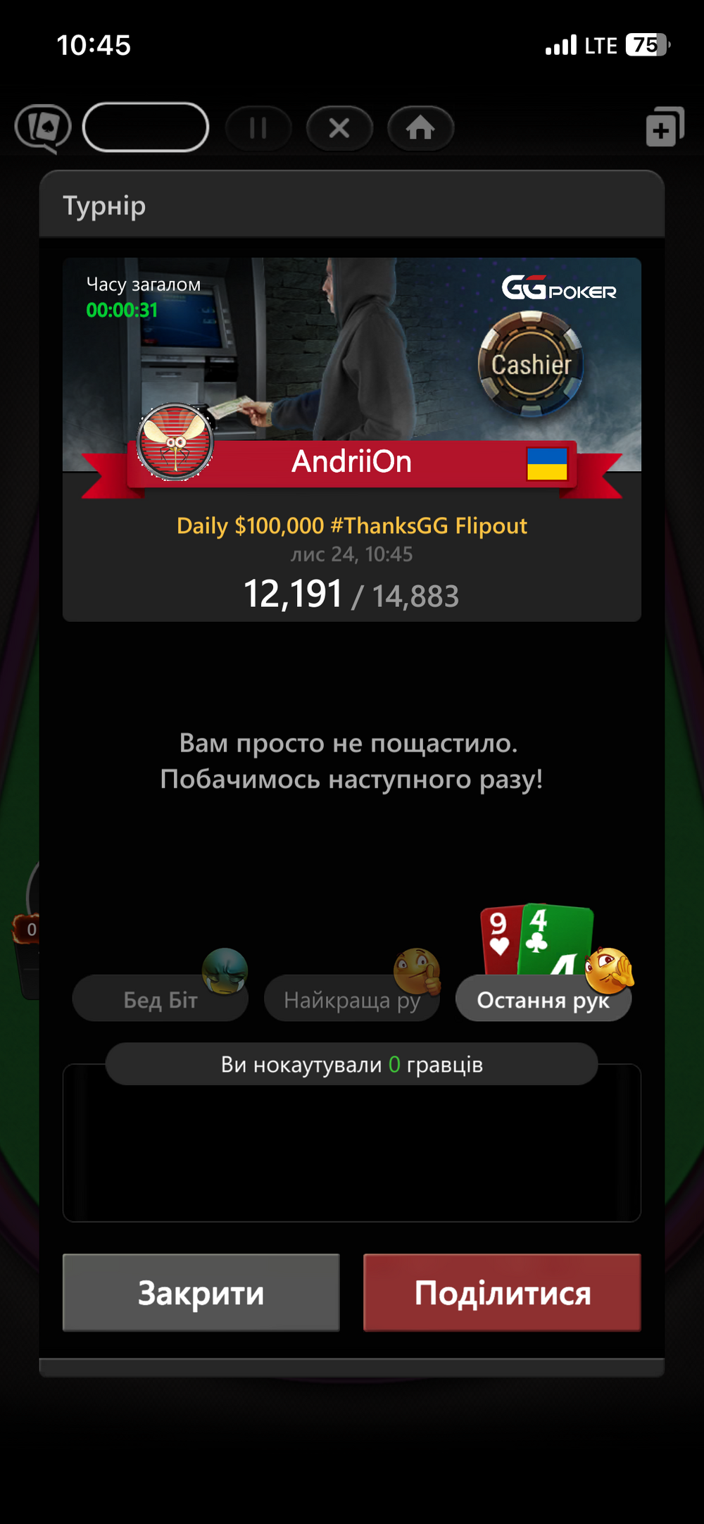 Отже результат… формат звісно дивний, всі в олині…щось виграти шанси нульові))