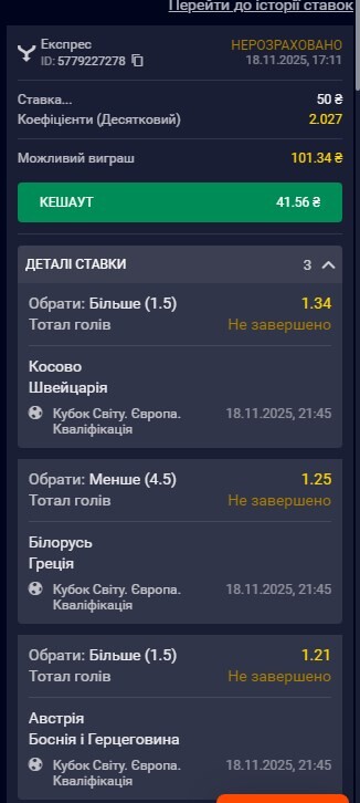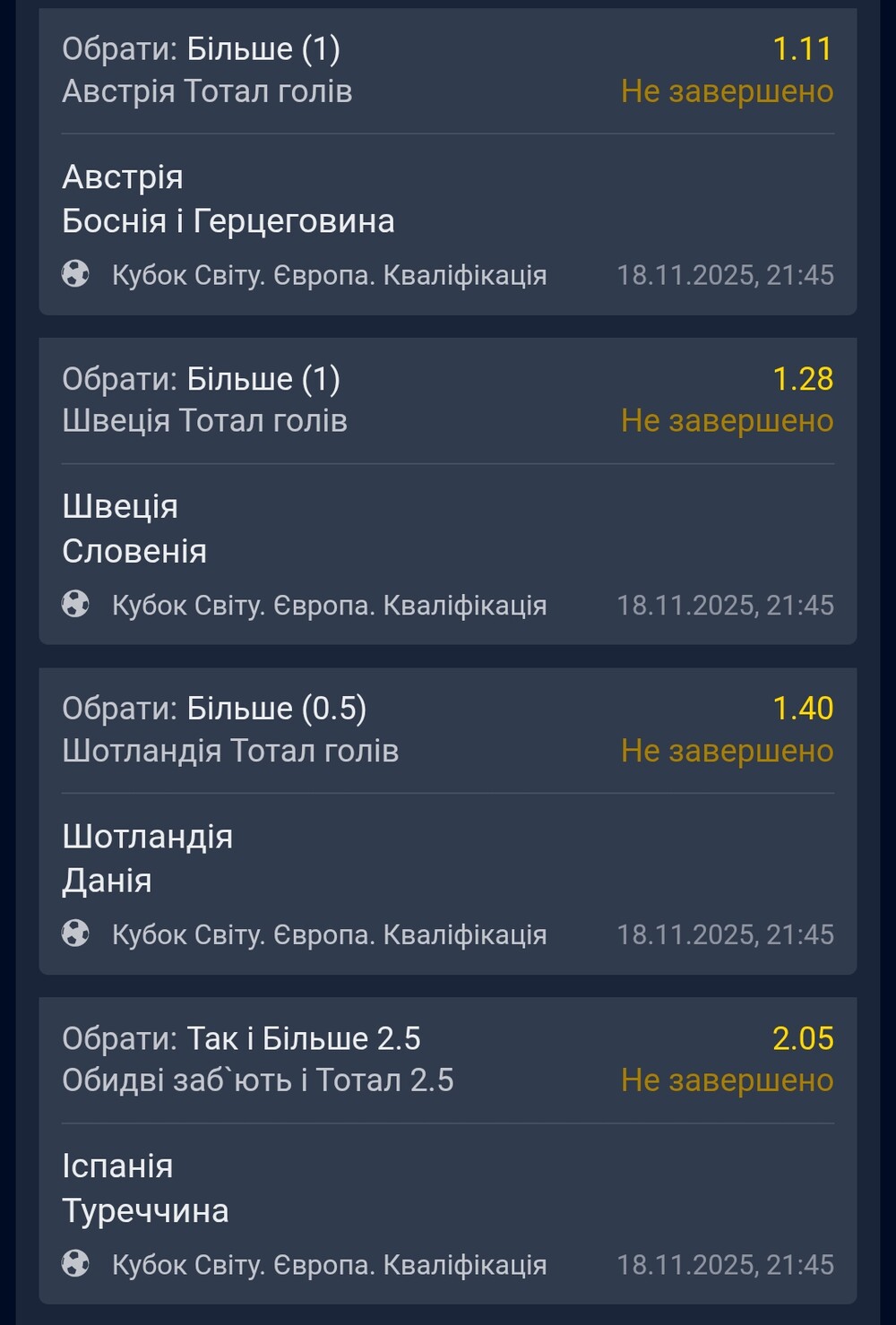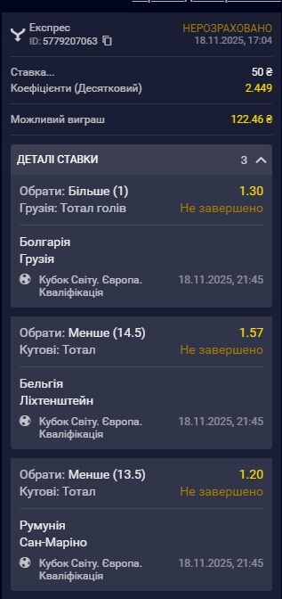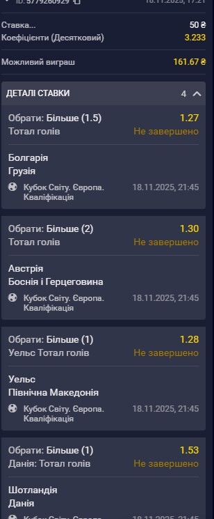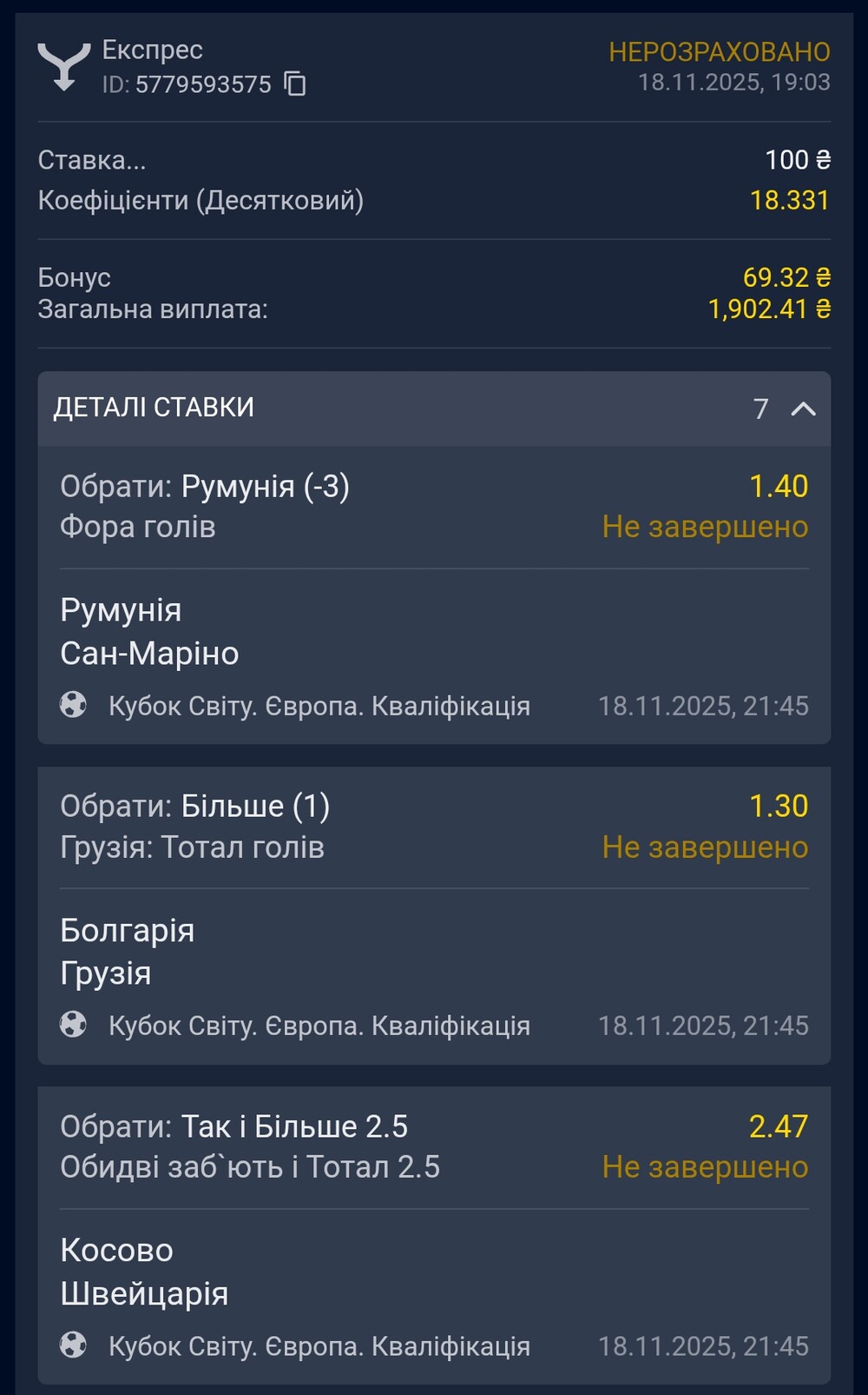 Вирішив сьогодні проставити експреси на громі,трохи там виграв в центролі, а потім ще примножив саме на ставках на Відбір до ЧС, дуже гарні і доволі прогнозовані матчі як на мене, через те що це останні тури і зрозумілі завдання команд,