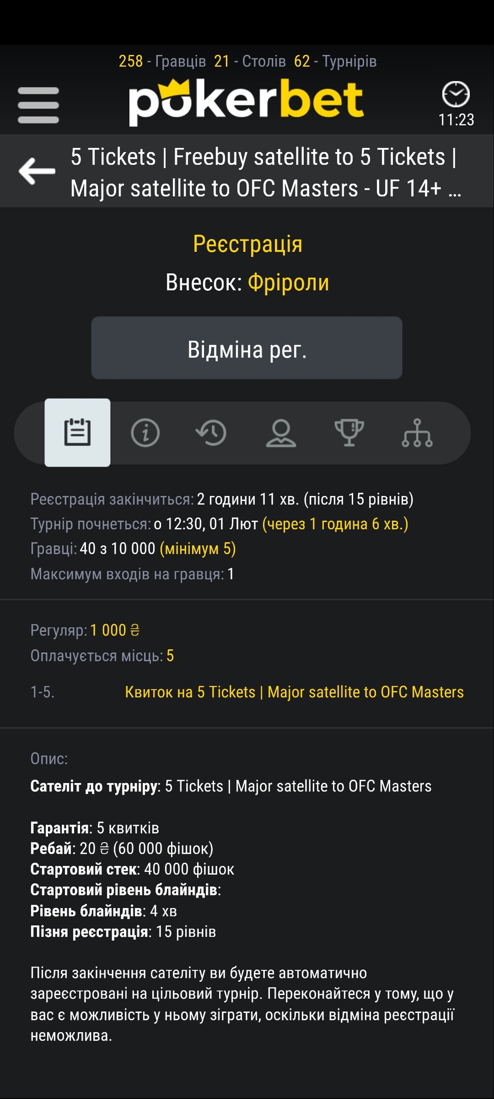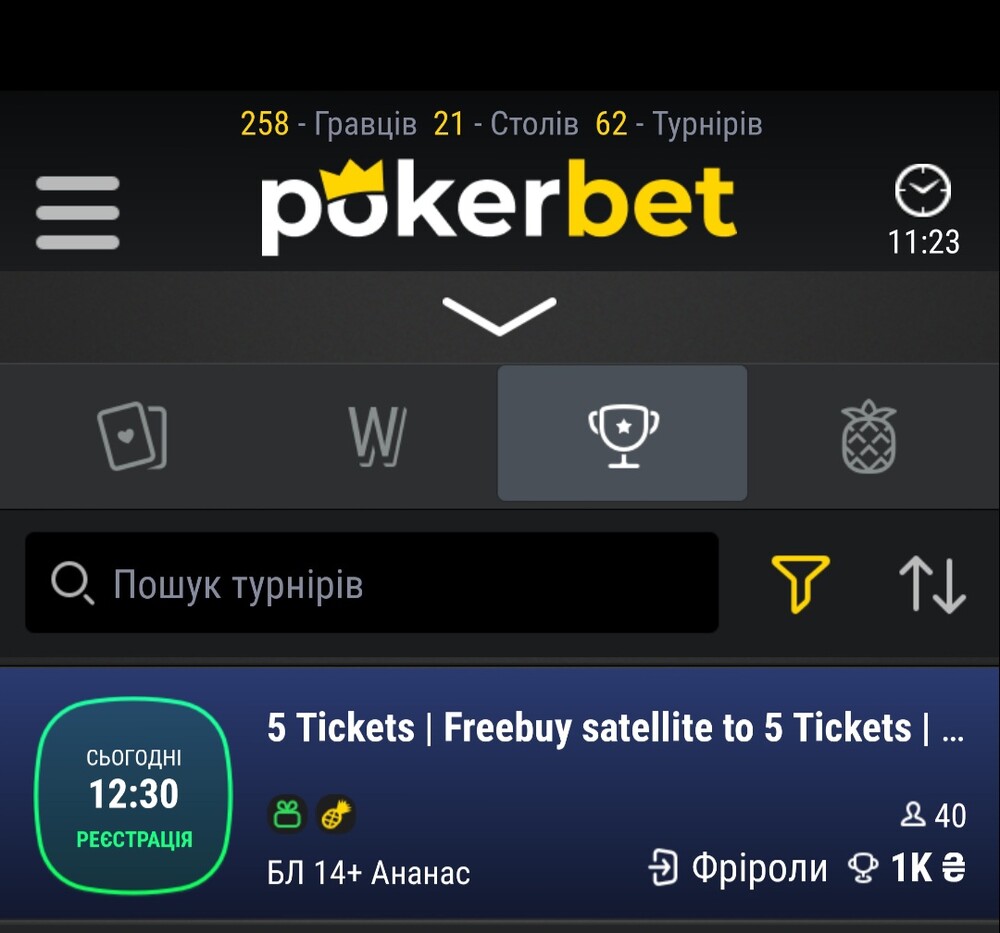 Сьгодні о 12.30 на Покер Бет Фрірол без паролю 5 квиточків по 200 грн.