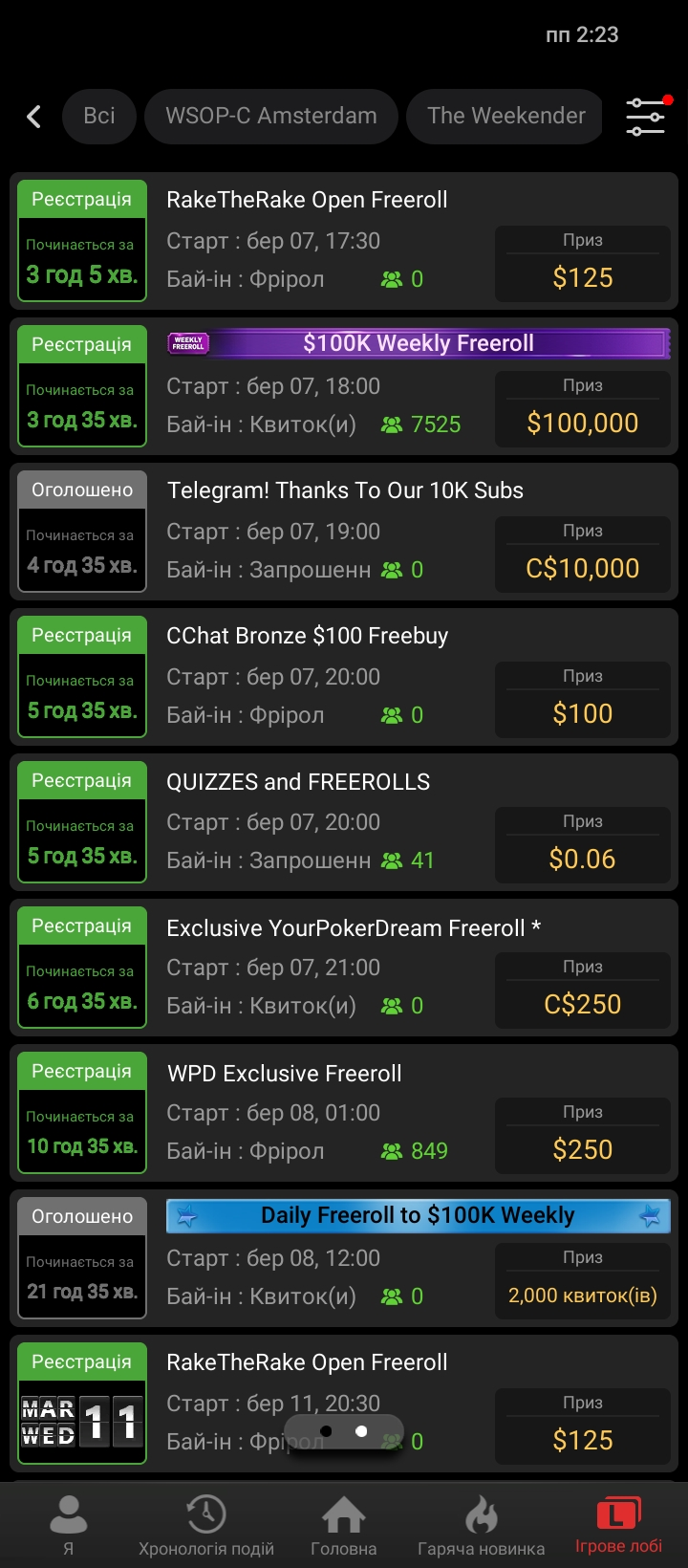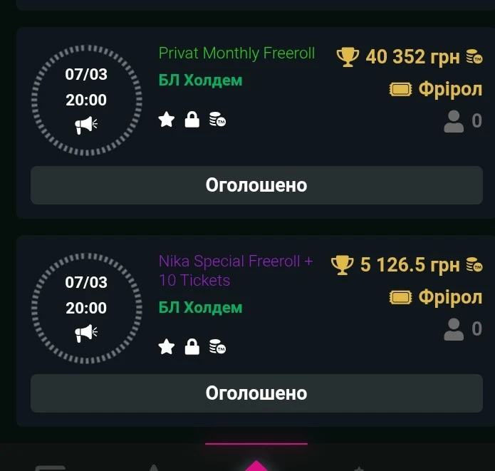 Безліч фріролів на GG poker і два на Vbet.