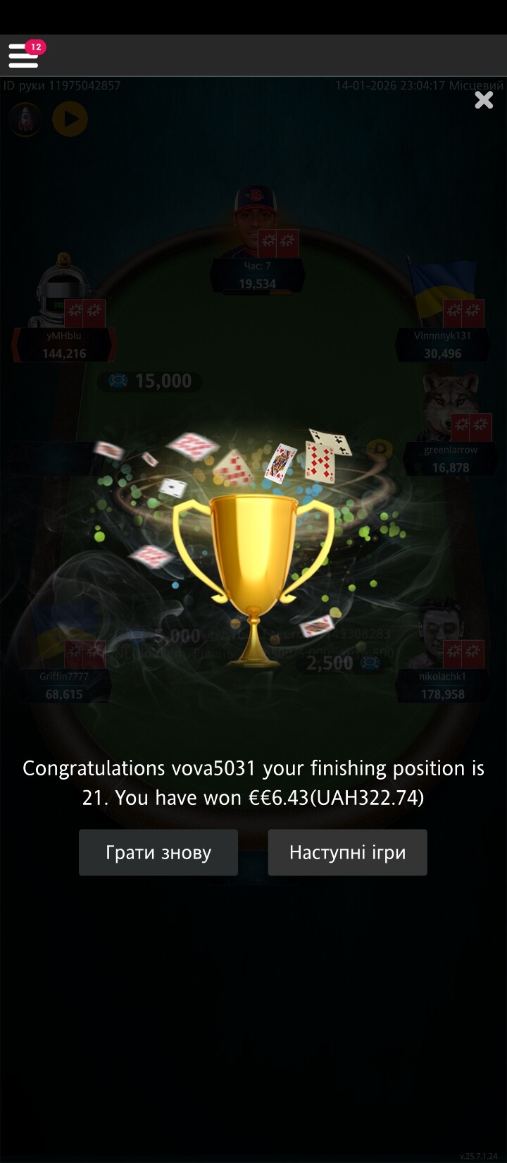 Дякую.Я так і не зіграв.Не було можливості.