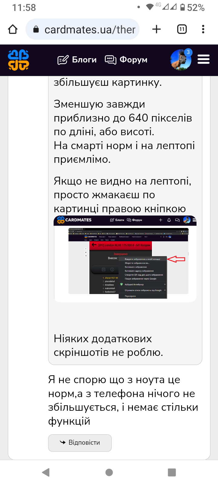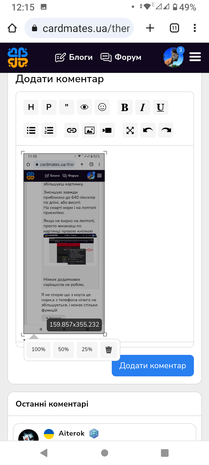 Я теж з телефона тільки,мені писали що з компа мої вставлені картинки на пів монітора,але як цьому зарадити?от у чому проблема,нґі ще наприклад мої картинки,чи це фото,чи просто закачані з нету,якщо дивитись блог чи форум з телефону норм все виглядає,а деякі блоги які виставлені з компа то там нічого не видно що пише,треба тоді робити скрін і збільшувати,якщо хочеш щось прочитати,бо так неможна збільшити,і виходить комусь треба підстроюватись,бо получається ділиться на тих хто з компів,ноутів,і з телефонів,і у всіх свої нюанси)