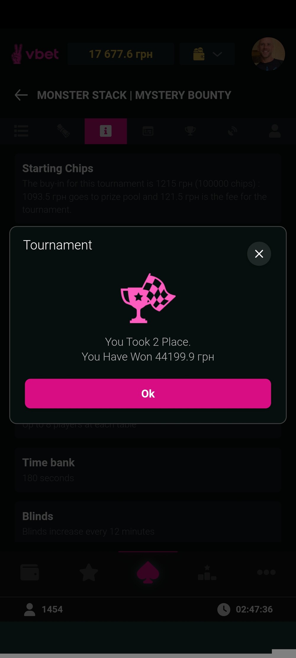Був коротким 3 стеком, але витримка дала своєч вибили 40 бб а я  з 10 бб удвоївся і посів 2 місце різниця між  першим місцем 300 грн. Бест кеш і 17к містері
