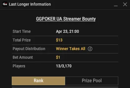 1. Є ЛастЛонгер по цьому турніру, вхід 1$, Переможець забирає все 💰