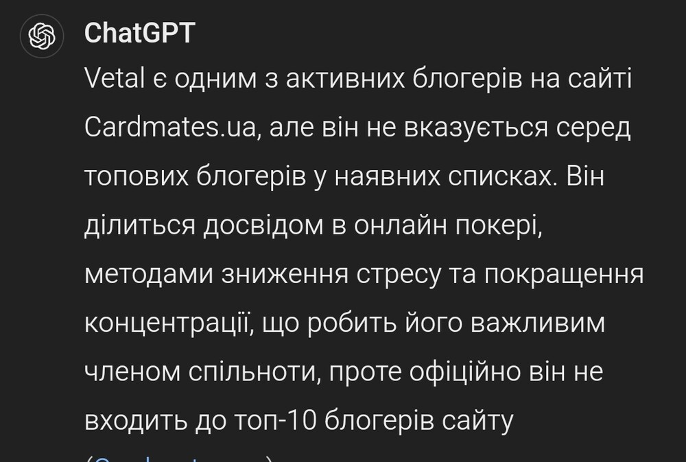Вирішив запитати у ChatGPT 4.0 наступне: