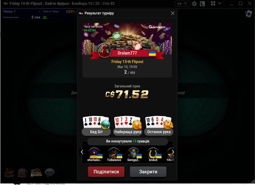 Сьогодні на GGpoker відбувся Friday 13-th Flipout. Чесно кажучи не очікував нічого. Але леді фортуна вирішила інакше. Ну і скажу відверто це мій найкращий результат на ggpoker, якось так