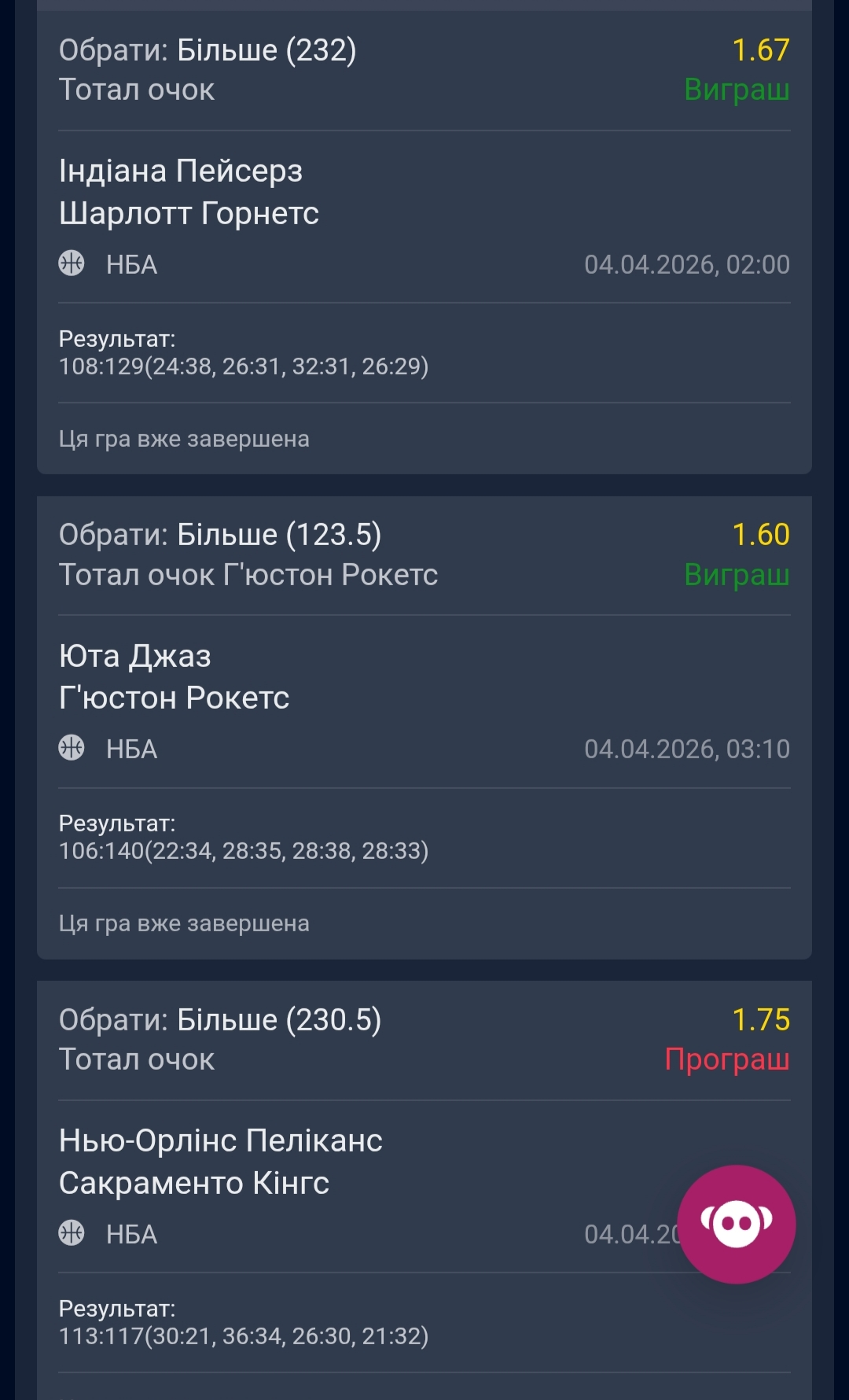 Йой. Не люблю тотали в НБА. Мені більше подобається П1/П2 або чверті. Інколи можна щось цікаве по гравцям знайти.