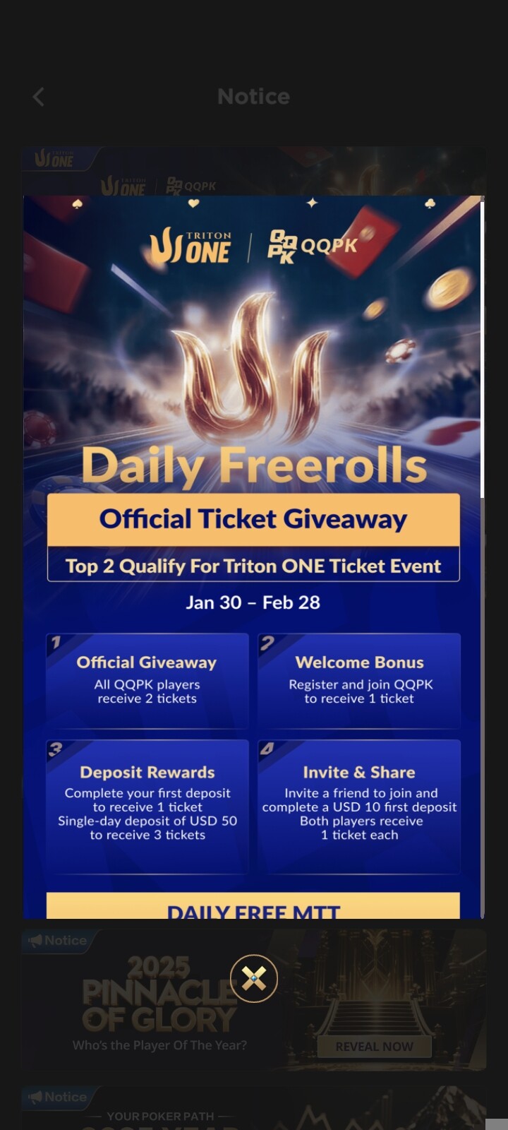 Друзі, з’явилася крута можливість для тих, хто хоче поповнити свій банкрол без ризику або відібратися на серйозні івенти. QQPK спільно з Triton ONE запустили масштабну акцію з щоденними фріролами, яка триватиме весь лютий.