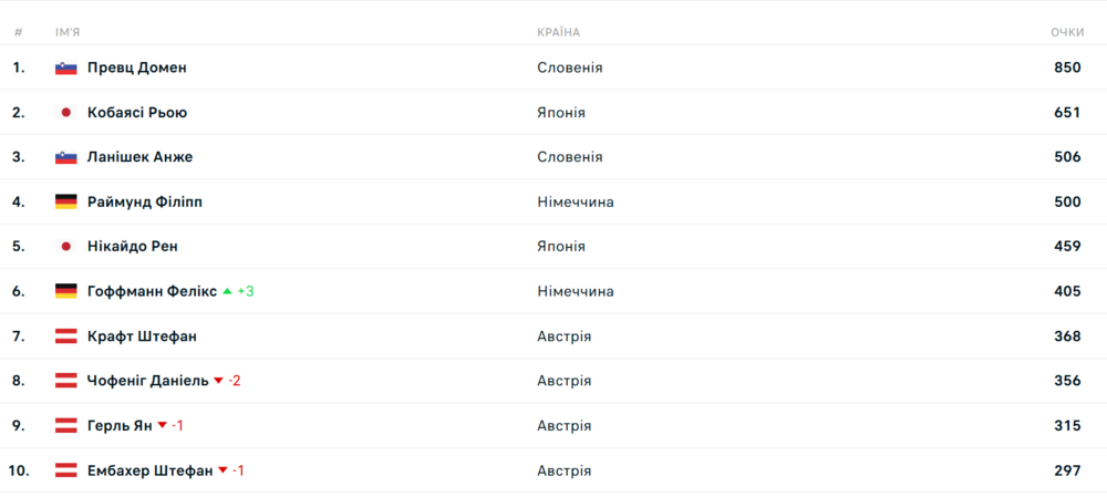 Лідерство в цьому сезоні з великим відривом захопив словенець Домен Превц,в хорошій формі перебувають трьохкратний переможець Кубка трамплінів японець Р.Кобаясі та ще один словенець А.Ланішек.