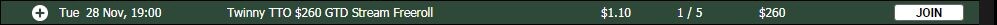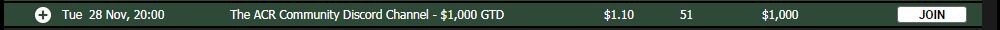 Далі буде турнір о 20.00 з гарантією 1000 $ та БІ 1.10$. Відносно невелика поляна. Потрапляв там в ІТМ. Призи варті уваги =)