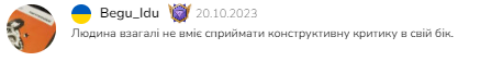 По перше не розумію для чого тут скрін мого відгука до твого профілю. Я залишив тобі цей відгук, після того як задав тобі в нашому листування питання, а ти написала мені "пішов звідси" чи якось так.... Тому і такий відгук. Тільки не розумію до чого він в твоєму коментарі. Як ти пишеш, що на СМ є функція "-", то так само є функція негативного відгука....