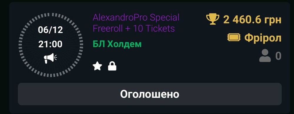 AlexandroPro Special Freeroll + 10 Tickets.