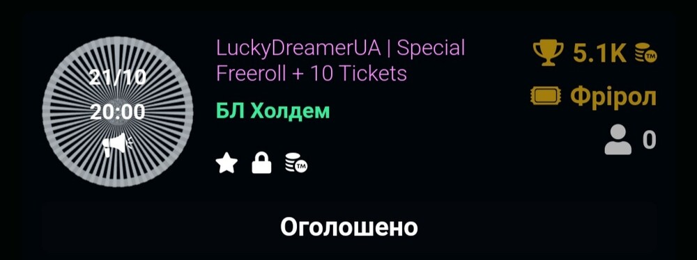 🟢LuckyDreamerUA | Special Freeroll + 10 Tickets
