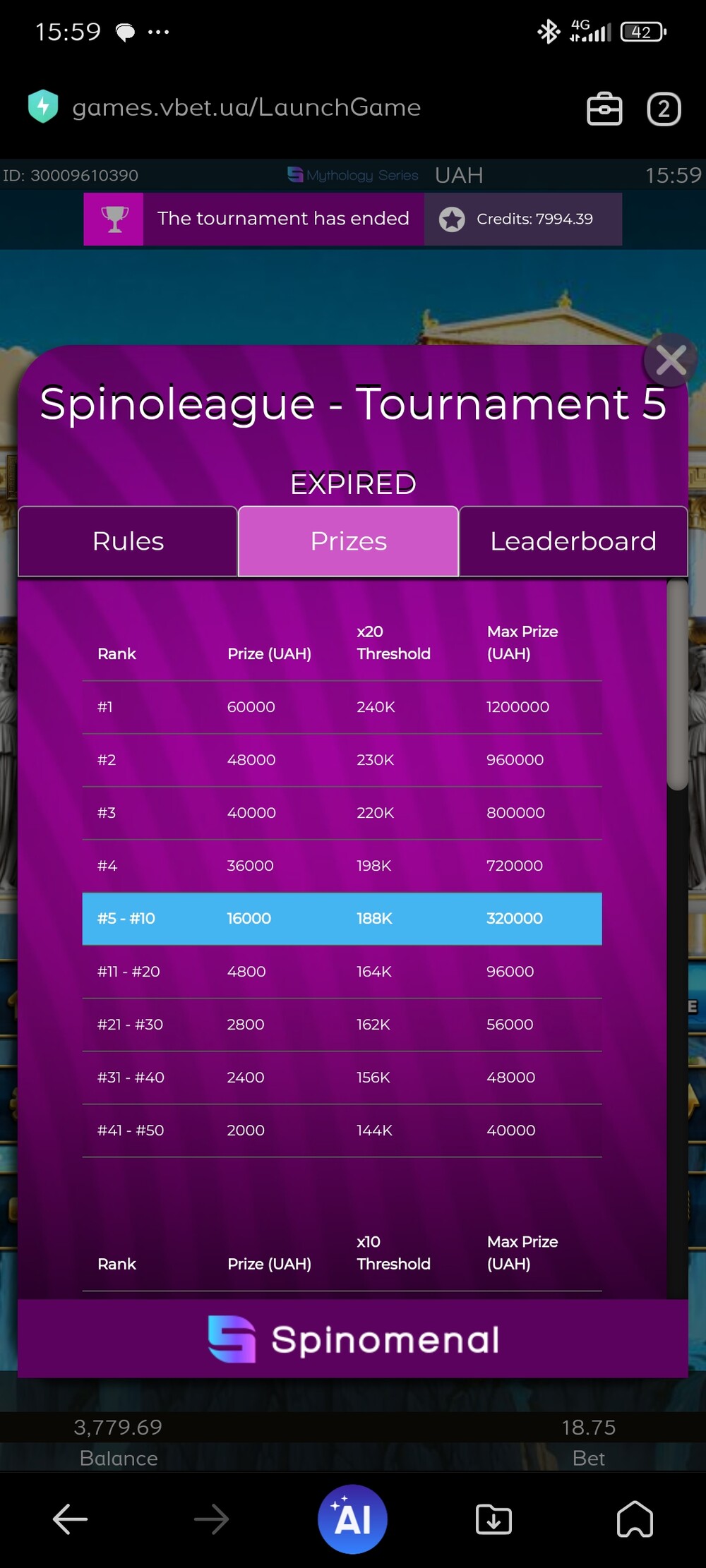 Статистика за Spinoligue Tournament 5 (round 3) ±: