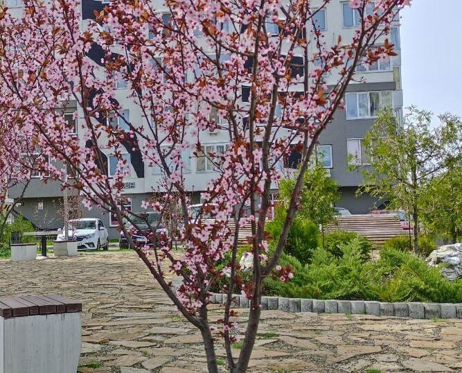 Сьогодні шли з сином додому з садочка, а на вулиці така краса...Учора буквально все ще було чорне, а сьогодні вже усіяно квітами...
