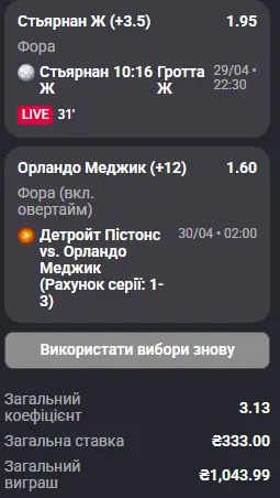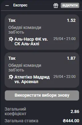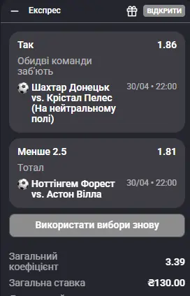 Мін. коефіцієнт для відіграшу: 1.5 для кожного вибору в експресі