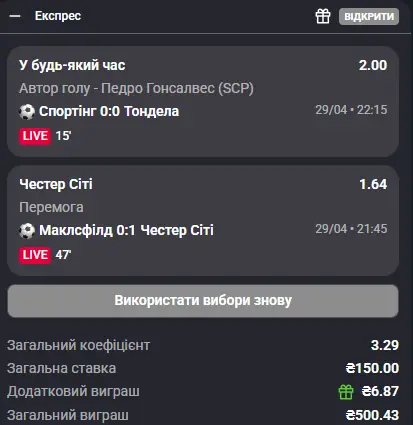 Далі всю суму)15к на експрес 2 події по 1.5.