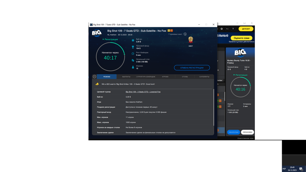 На 888 є серія сателітів з поетапним відбором до головного турніру. Ви перемогли у турнірі, який був сабсателітом (одним із етапів відбору до головного турніру). Призом у цьому турнірі була саме участь у іншому турнірі/сабсателіті. Тому і неможлива відміна реєстрації. Коли реєструєтесь у таких турнірах, то потрібно уважно читати умови цих турнірів і призів. Тому і рум тут нічого не порушує, так як Ви прийняли ці умови зареєструвавштись у цьому сателіті.