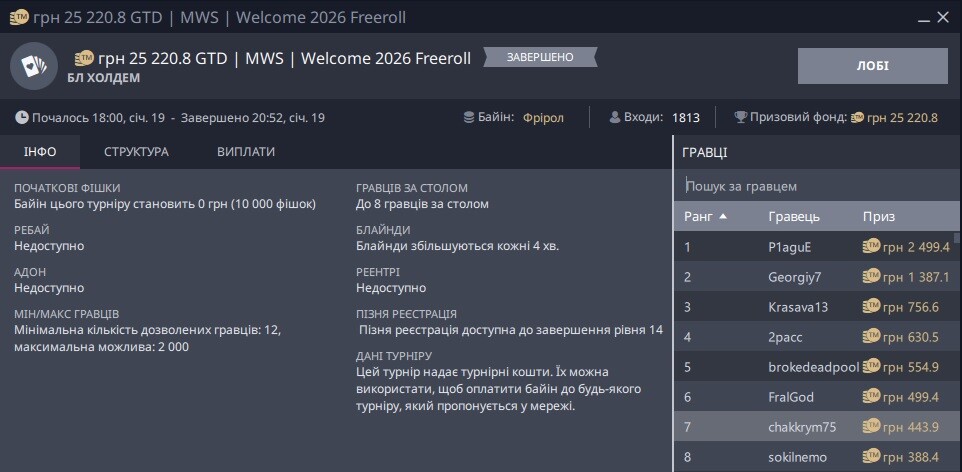 Так структура добра,30к фішок хватає щоб попасти в призи