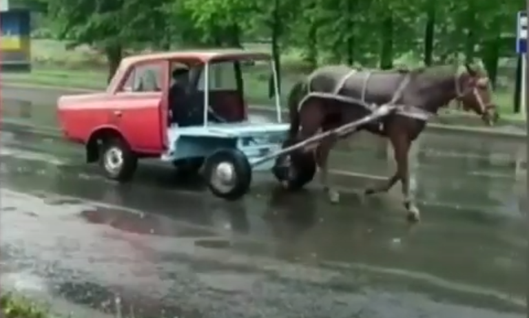 Ооо це ще нічого,бачив у кацапів просто осла запрягли в тачку якусь і так по селі пересувались)хоча що то що це просто якась фігня,нащо таке робити поняття немаю жодного)