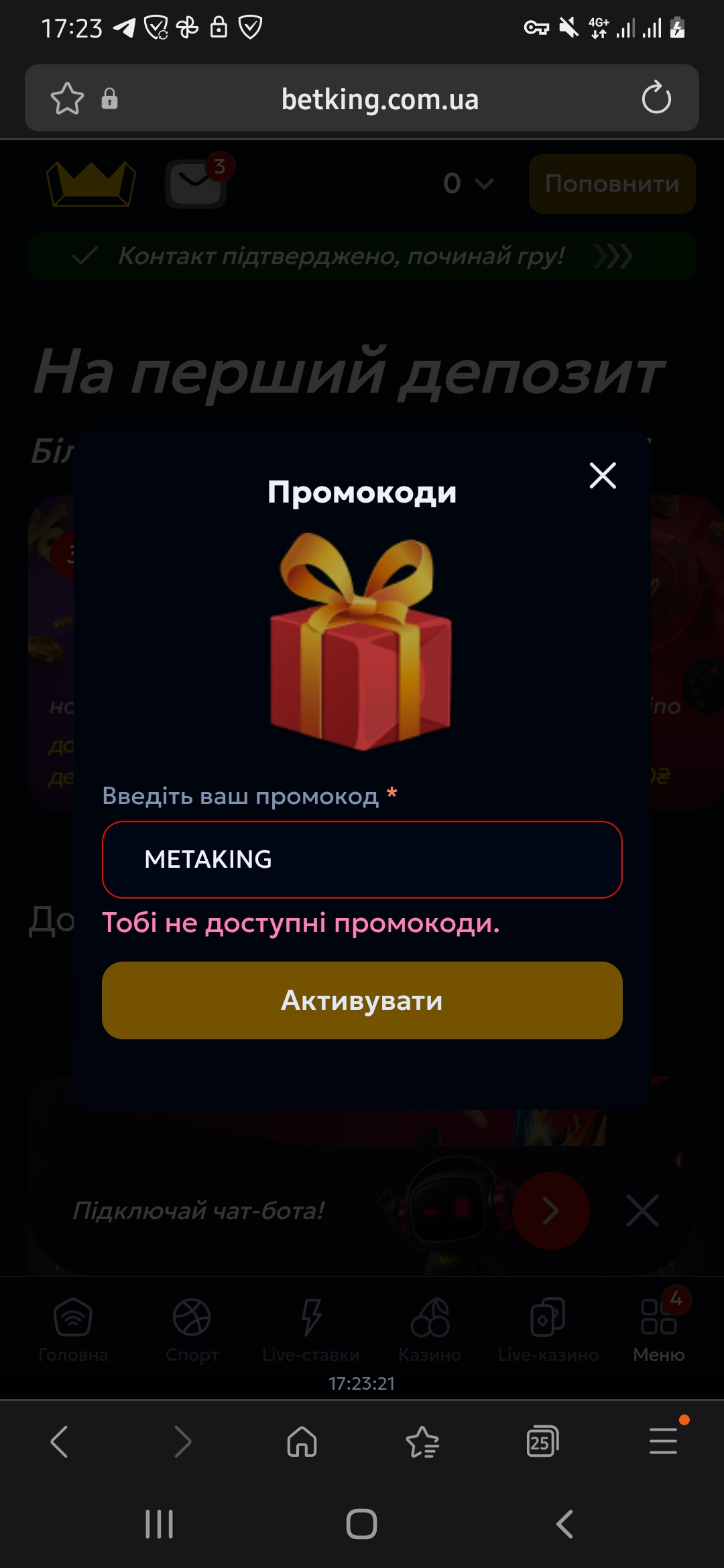 Промокод це добре, але бет Кінг мені забанили їх використання😁