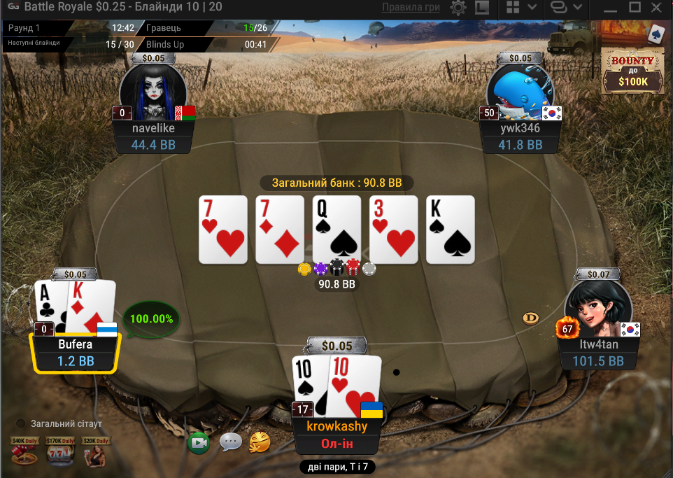 Біль, але це треба пережити! Сам зіткнувся з тим що вже тиждень все мимо! Інколи заходиш у 6 баунті турнірів і вилітаєш без жодного баунті! Взагалі зараз серія на GG якась не фартова для мене!