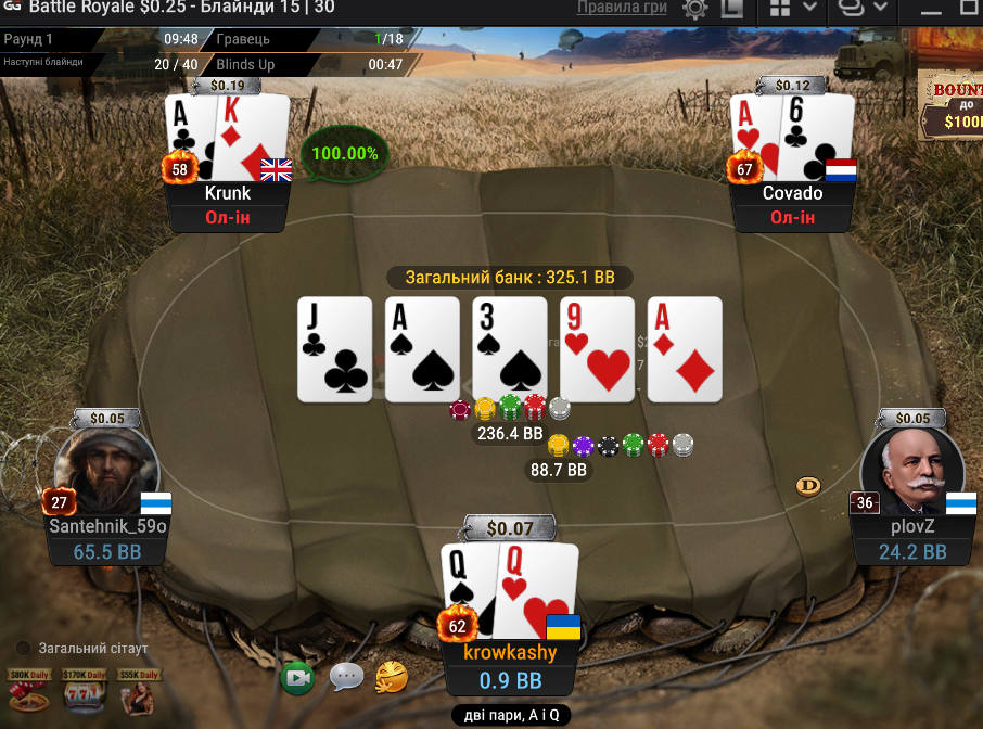 Коли на рахунку парк баксів гг абсолютно завжди пожирає їх і не важливо яка карта.префлоп оллини