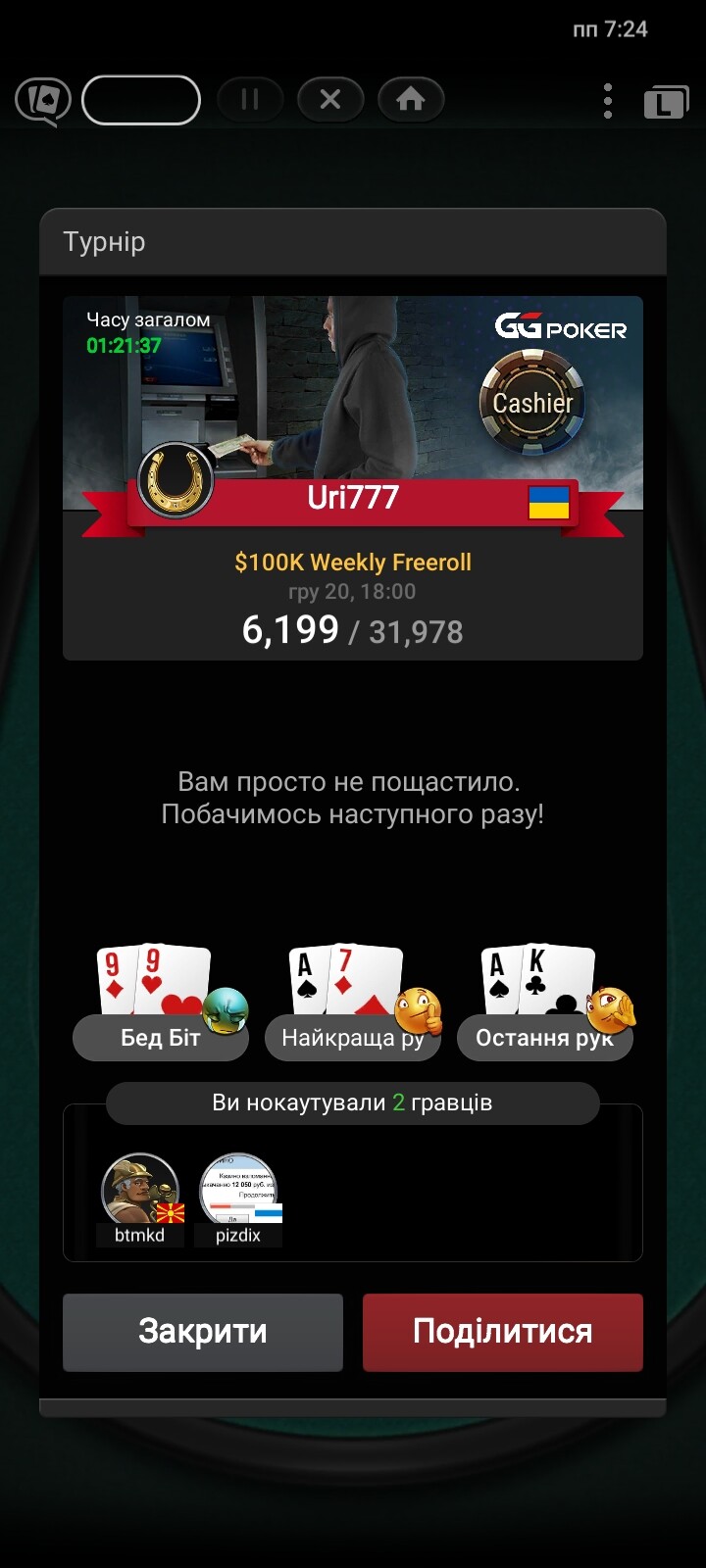 Іншого разу пощастить більше 👍