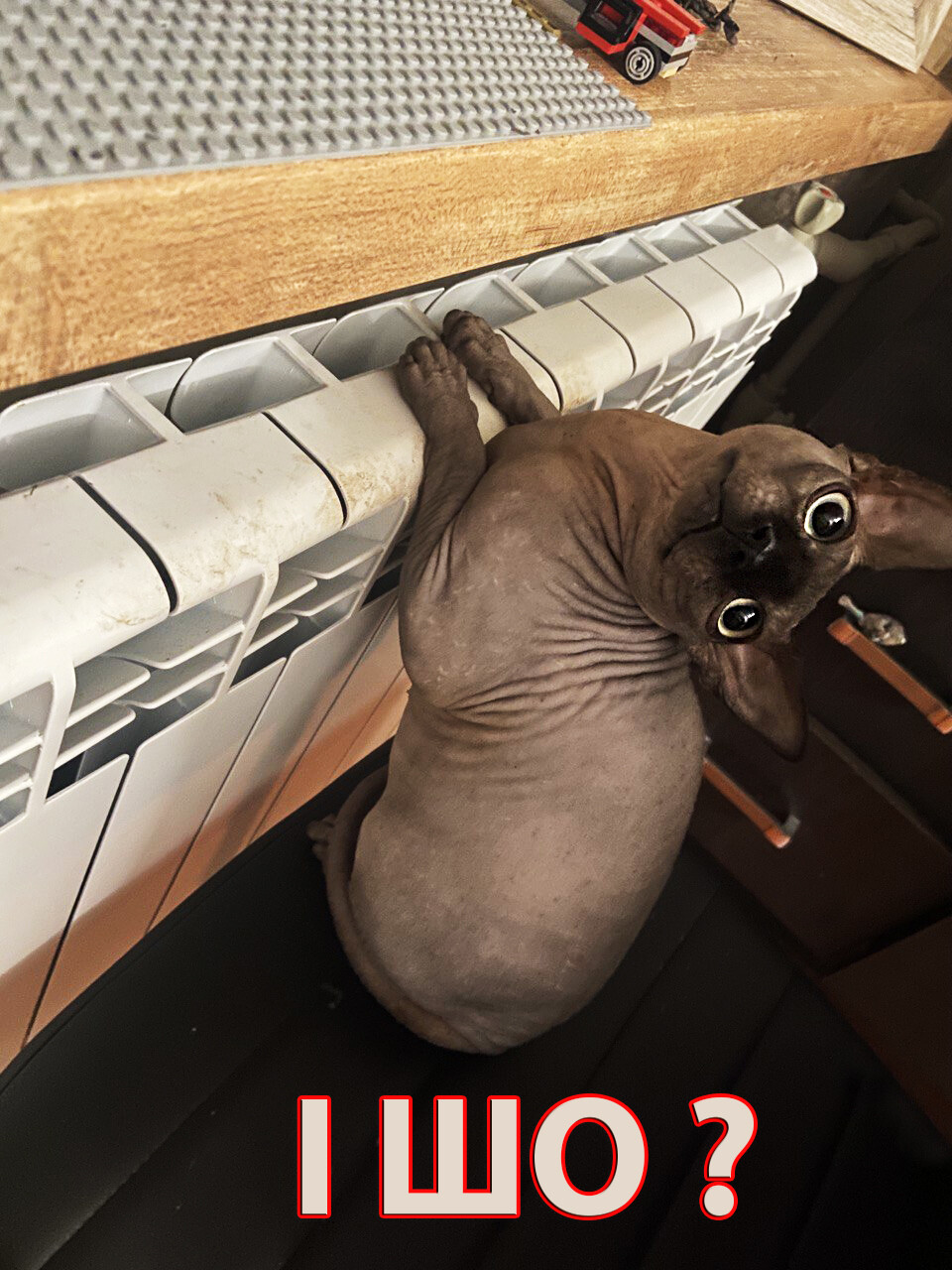 Кіт почав грітися . Якщо стілець не поруч з батареєю він починає мяукати . Коли підставляєш стілець - просто залазить , кладе лапи і відвисає )
