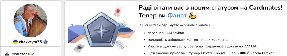 Я думаю, що ви вже зрозуміли про що йтиме мова. Так, я отримав статус "Фанат".
