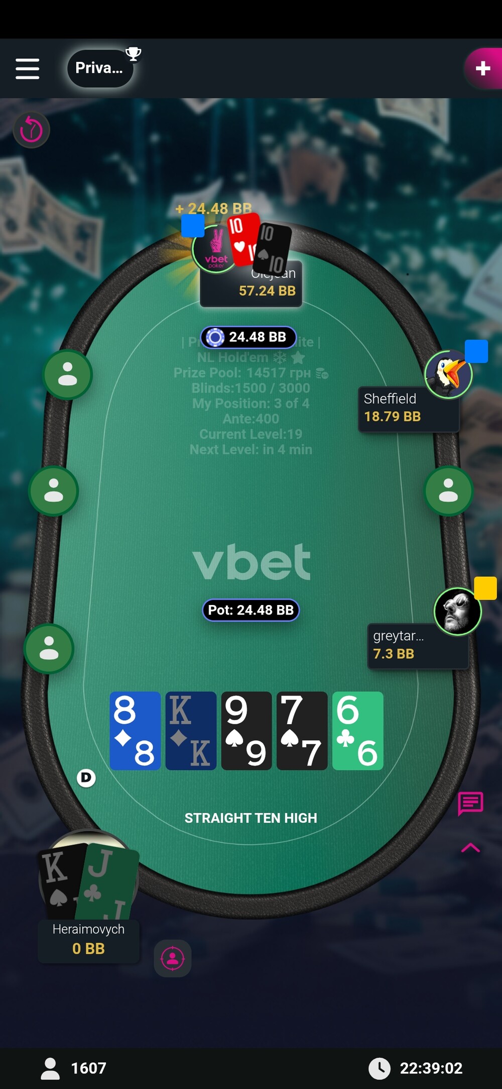 Останнім часом не має ніяких заносів і якщо чесно то в покер взагалі мало граю. Лише на щоденні подарунки заходжу і інколи в стейк покері можу пограти, але там ще не разу не потрапив у призи і все за одвічної проблеми доїздів суперникам.