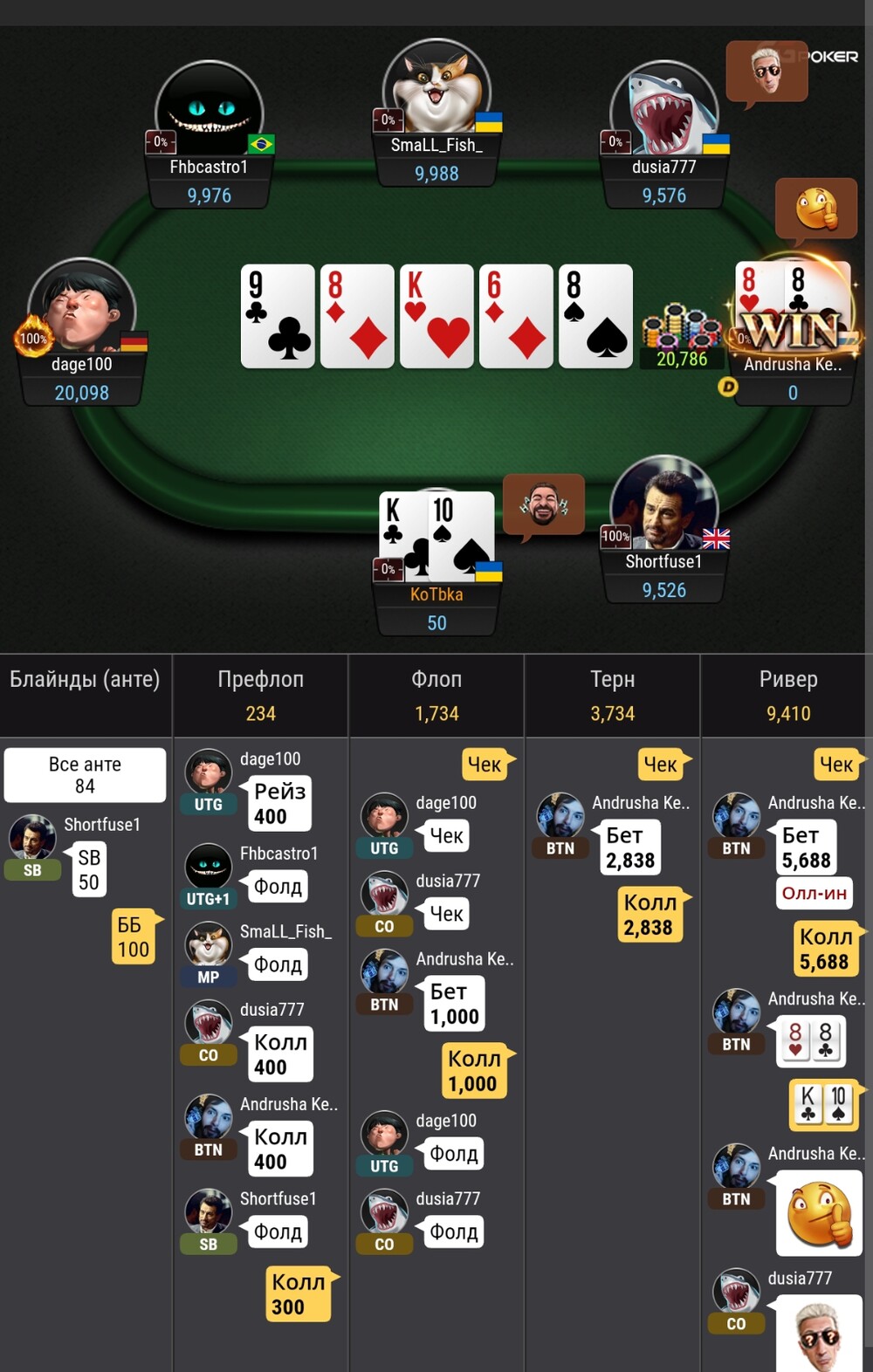 Вгадав я сьогодні найпопулярнішого музичного виконавця ПашіЛі) виграв собі вхід в Соопле) Вже на другій роздачі піймав пару тузів, чесно до останнього мав надію що в нього буде К2-К5🥺 не вгадав, залізся проти каре 8)