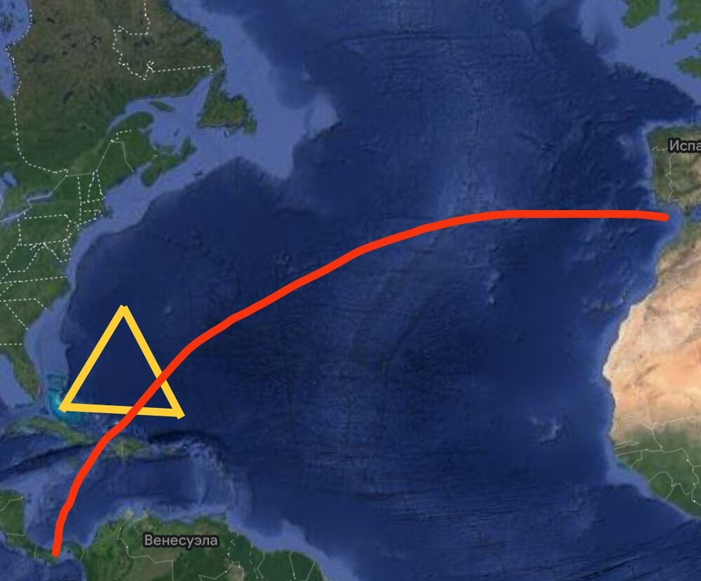 Одного разу, капітан вирішив скоротити трішки перехід, то ж пішли ми через Бермудський трикутник) Виглядало це якось так: