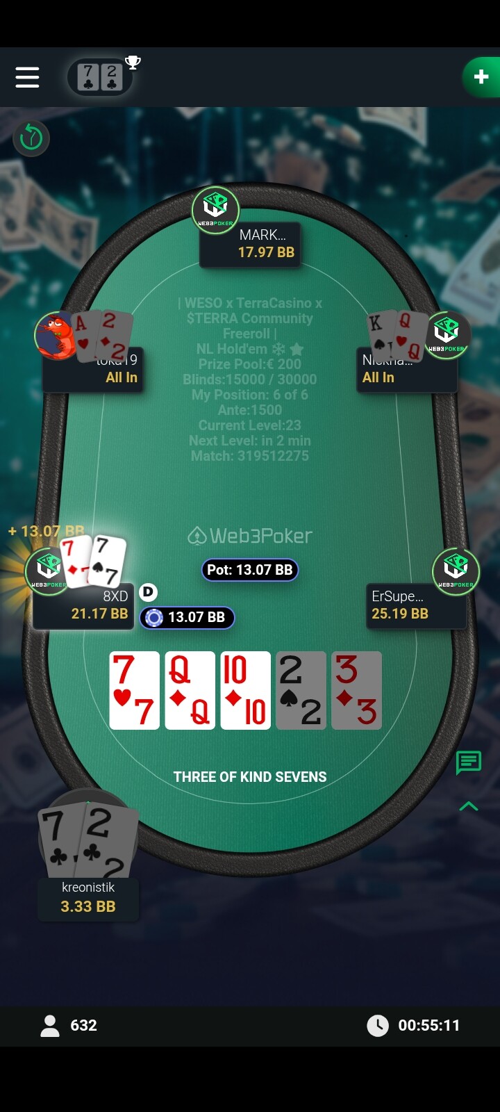 Де удачної зайняв топ 4 маючи пару бб. Дякую опа за хорошу гру