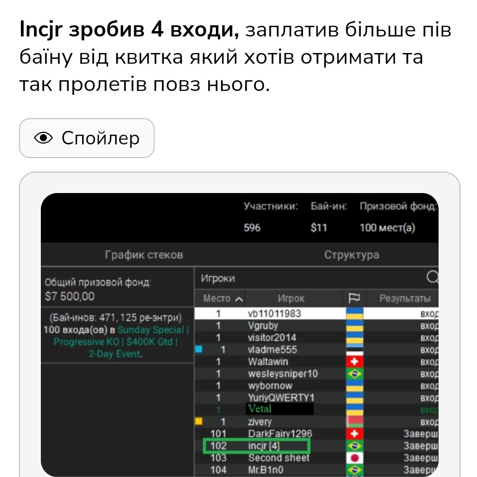 Можливо в МТТ турнірах вони й тімплеять та в спінах я їх бачив перший раз, до того ж з одним я грав весь ранок, а інший зіграв один турнір й більше його не було в лобі. Маю припущення, що вони знайомі та те що потрапили в один турнір те ж були не в захваті, бо знають чим це може для них обернутись.