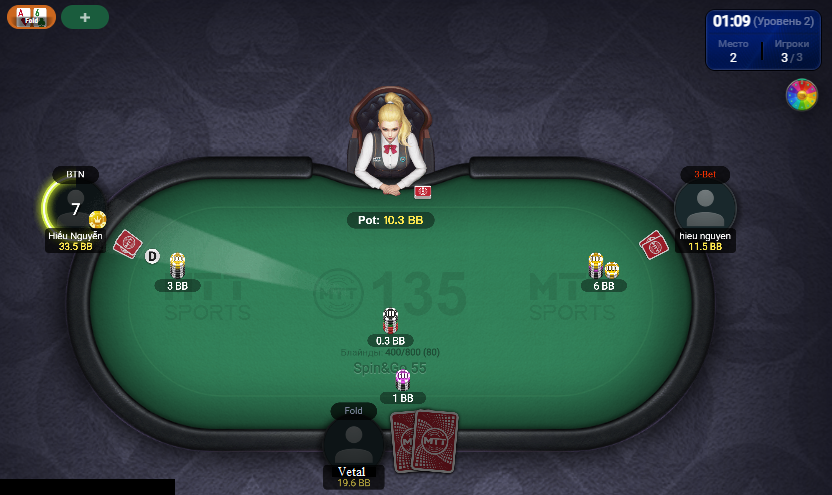 Батон бет 3вб, МБ 3бет 5-6вб, я пас та батон теж пас. І так ледь не кожну руку.