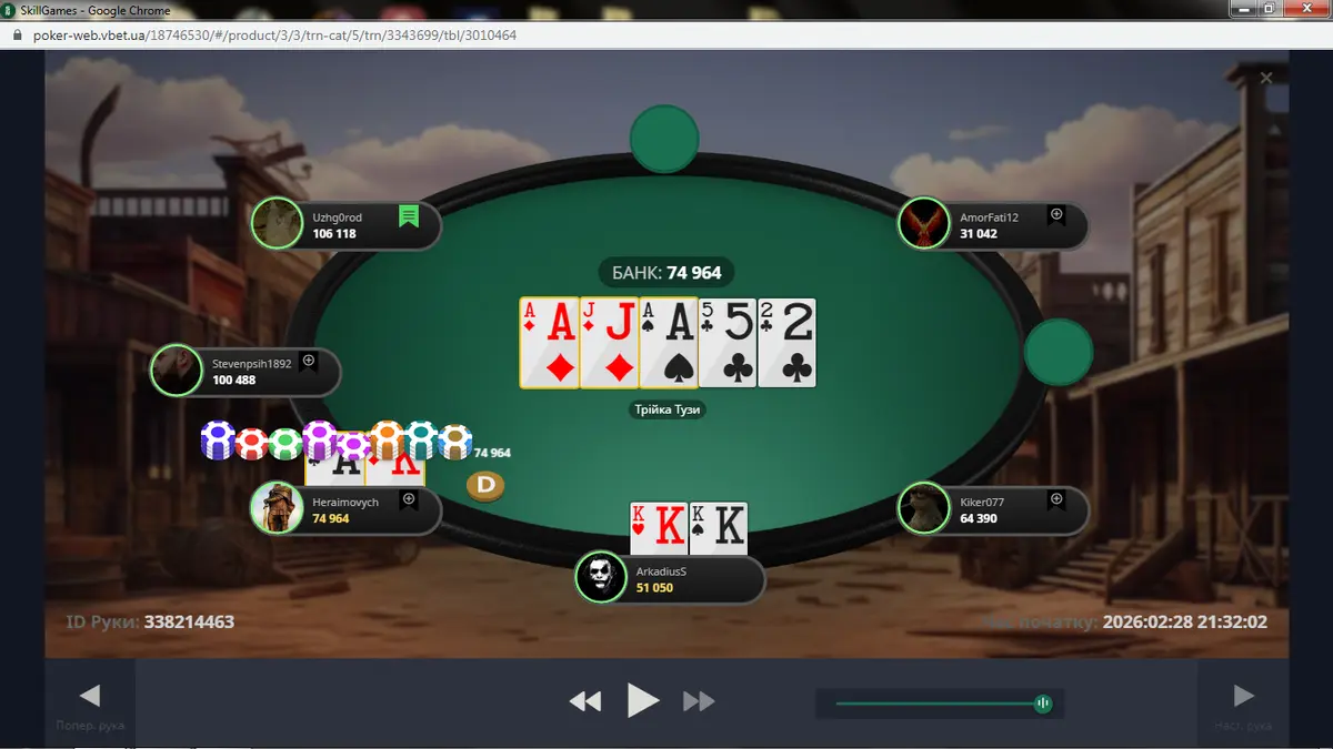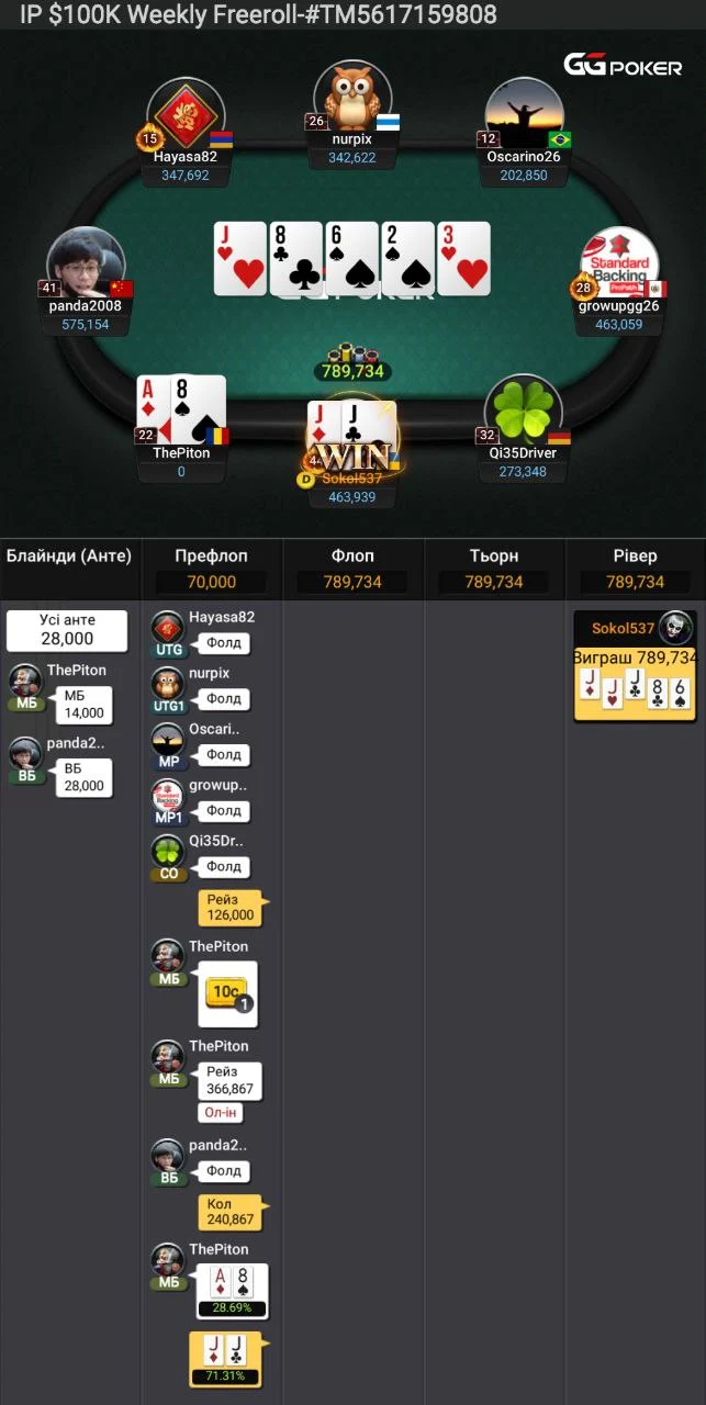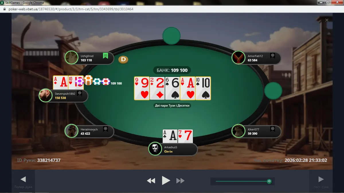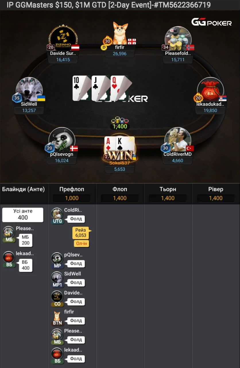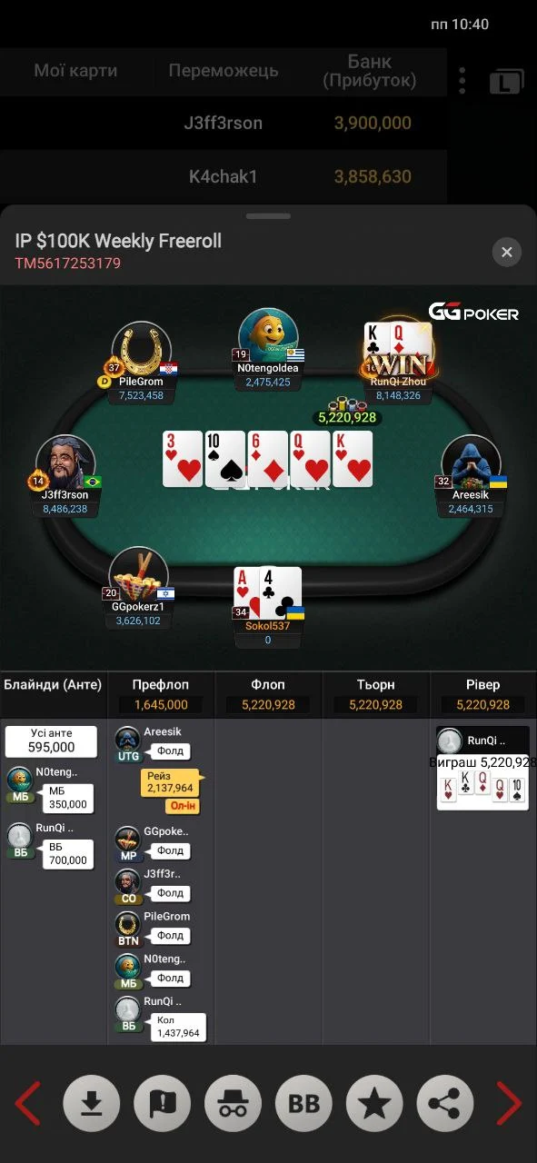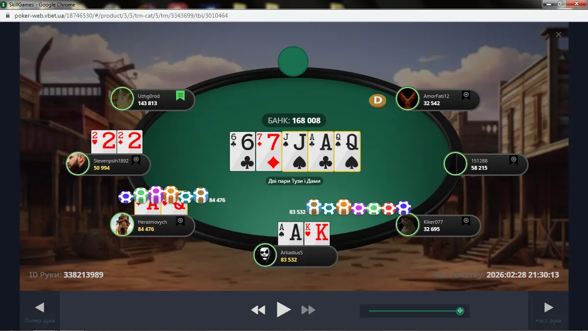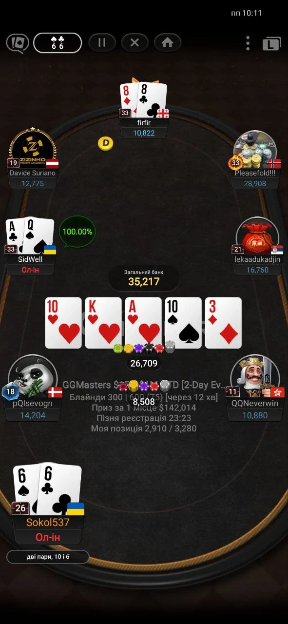 Роздачу про яку ти розказав я встиг заскрінити. Стріт по дамах на двох і фул по валетах. Так жорстка епічна роздача після якої з'явися шанс у коротишів.