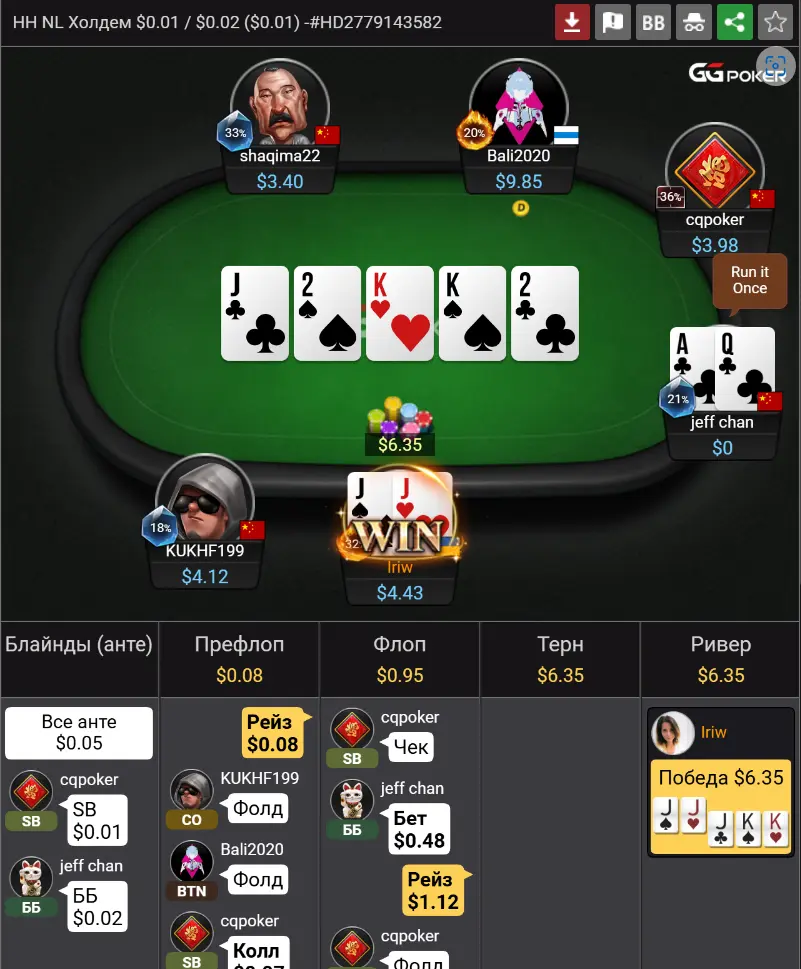 Ставка 30% по другій парі мабуть ок, но кол чек рейза на флопі було стрьомно, так стрьомно, що ввімкнулось бій замість біжи. Та і тьорн з ривером давали чим бити.